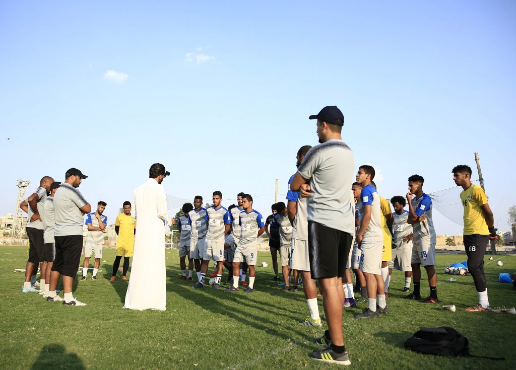 واستهل المدير الفني للفريق “محمد العياري” التدريبات باجتماع مع اللاعبين ، بعد ذلك انطلقت التدريبات بالجري حول الملعب ، تبعها تدريبات لياقية عبر محطات مختلفة ، بعد ذلك طبق اللاعبين عدداً من الجمل الفنية للجوانب الدفاعية والهجومية ، كما خضع حراس المرمى لتدريبات خاصة مع مدرب الحراس ، بعد ذلك أجريت تقسيمة على منتصف الملعب ، واختتمت التدريبات بتمارين الإطالة .