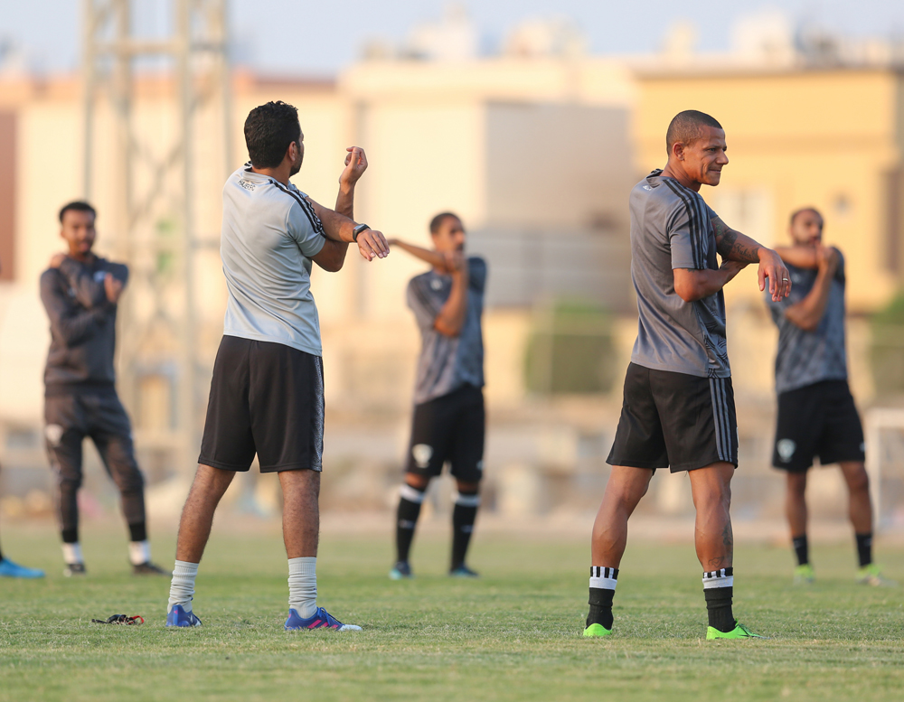 وانطلقت التدريبات بالجري حول الملعب ، تبعها تدريبات لياقية عبر محطات مختلفة ، بعد ذلك طبق اللاعبين عدداً من الجمل الفنية للجوانب الدفاعية والهجومية ، كما خضع حراس المرمى لتدريبات خاصة مع مدرب الحراس ، واختتمت التدريبات بتقسيمة على منتصف الملعب .