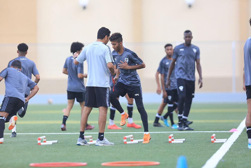 وبدأ الفريق بقيادة المدير الفني “محمد العياري” التدريبات بتمارين الإحماء واللياقة ، بعد ذلك خضع اللاعبين لتدريبات فنية لطرق بناء الهجمة والتنظيم الدفاعي والارتداد السريع نحو مرمى الخصم ، كما خضع حراس المرمى لتدريبات خاصة مع مدرب الحراس ، بعد ذلك أجريت مناورة كروية ، واختتمت التدريبات بتمارين الإطالة .