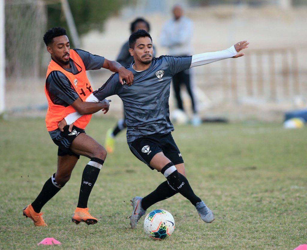 وبدأت التدريبات التي قادها المدير الفني “محمد العياري” بتمارين لياقية منوعة ، بعد ذلك طبق اللاعبين عدداً من التدريبات للجوانب الدفاعية والهجومية ، كما خضع حراس المرمى لتدريبات خاصة مع مدرب الحراس ، بعد ذلك أجريت تقسيمة على منتصف الملعب ، واختتمت التدريبات بتمارين الإطالة .