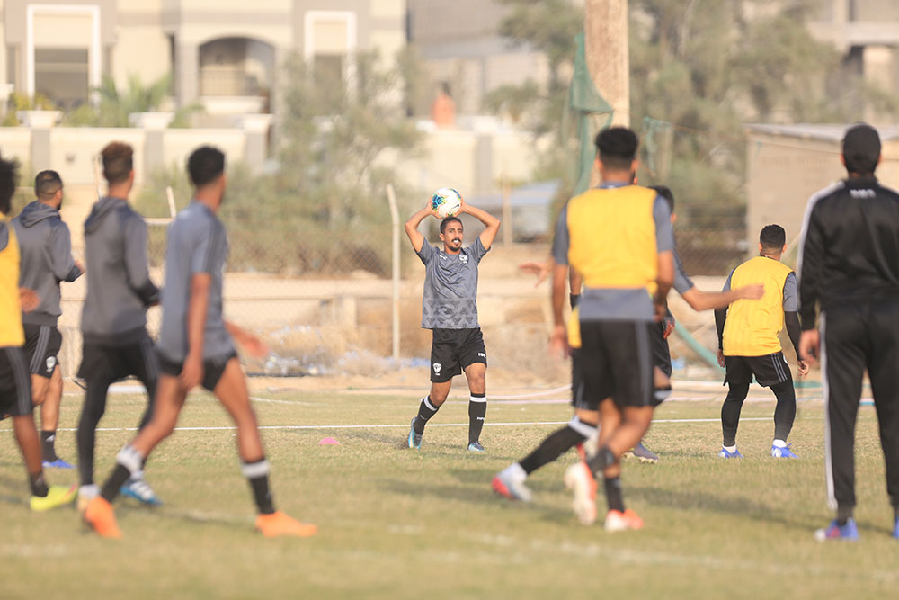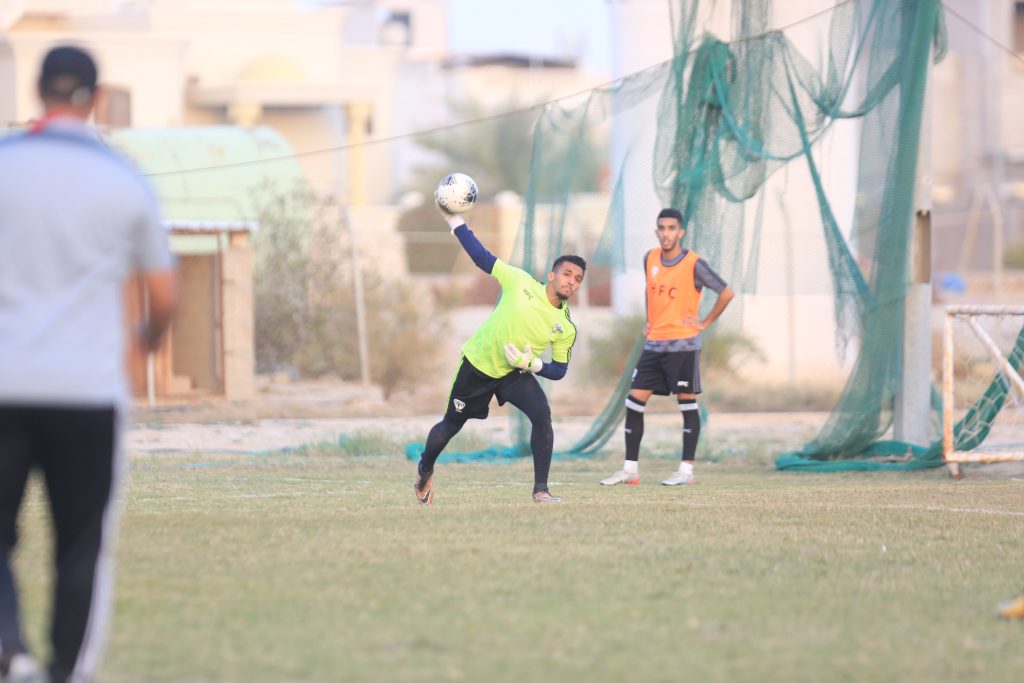 وبدأ المدير الفني للفريق “محمد العياري” التدريبات بتمارين الإحماء واللياقة .