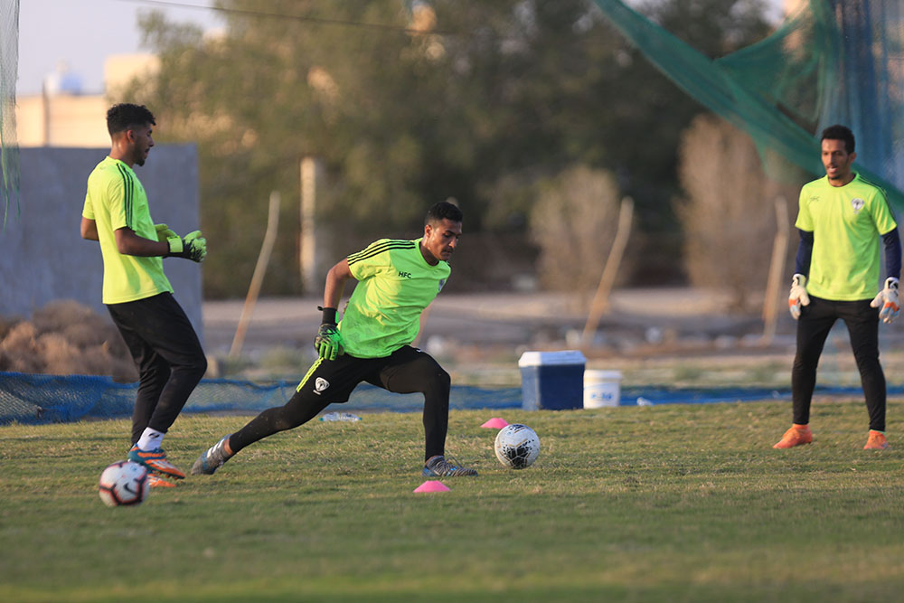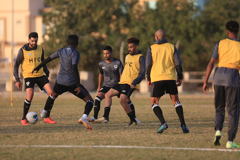 وبدأت التدريبات التي قادها المدير الفني “محمد العياري” باجتماع مع اللاعبين ، بعد ذلك خضع اللاعبين لتدريبات لياقية منوعة ، تبعها تطبيق عدد من الجمل الفنية للجوانب الدفاعية والهجومية ، كما خضع حراس المرمى لتدريبات خاصة مع مدرب الحراس ، واختتمت التدريبات بتقسيمة على منتصف الملعب .