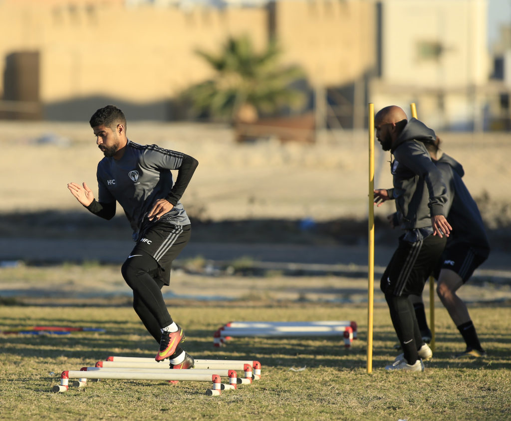 بعد ذلك انطلقت التدريبات بتمارين لياقية عبر محطات مختلفة ، بعد ذلك طبق اللاعبين عدداً من الجمل الفنية للجوانب الدفاعية والهجومية ، كما خضع حراس المرمى لتدريبات خاصة مع مدرب الحراس ، واختتمت التدريبات بمناورة كروية ، وبعد نهاية التدريبات خضع اللاعبين لجلسات في حمام الثلج .