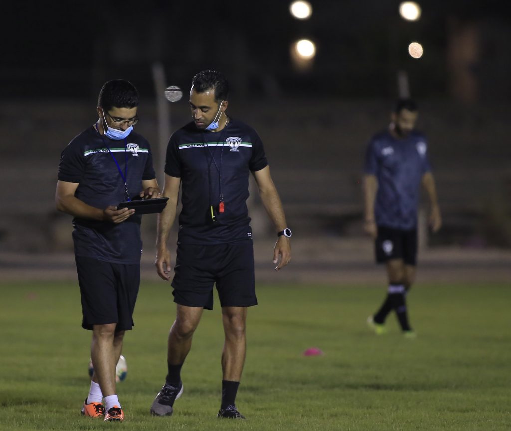 واكتفى المدير الفني للفريق “محمد العياري” بحصة تدريب مسائية أقيمت على ملعب النادي القديم ، وبدأت التدريبات بتمارين لياقية عبر محطتا مختلفة شملت الجري بسرعات مختلفة والقفز على الحواجز والجري مابين الأقماع وتقوية العضلات عبر كرات التوازن ، بعد ذلك طبق اللاعبين عدد من التدريبات للجوانب الدفاعية والهجومية ، كما خضع حراس المرمى لتدريبات خاصة مع مدرب الحراس واختتمت التدريبات بمناورة كروية .