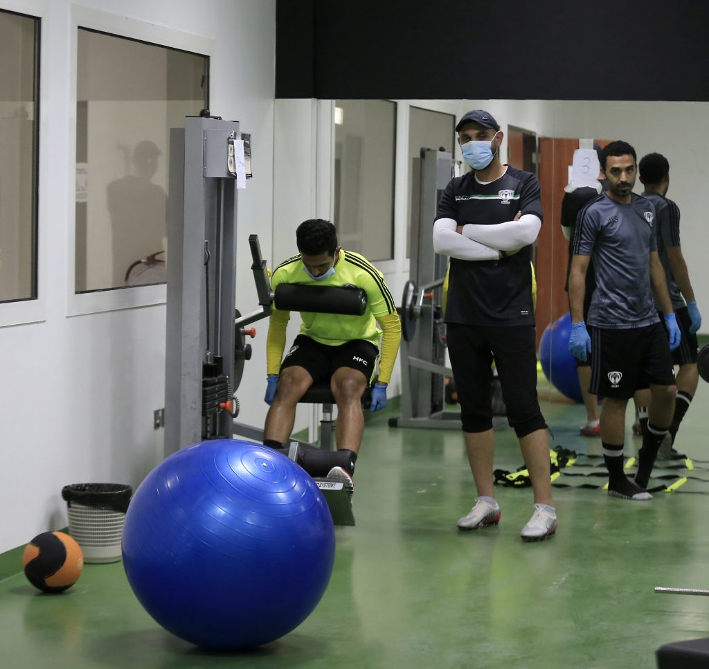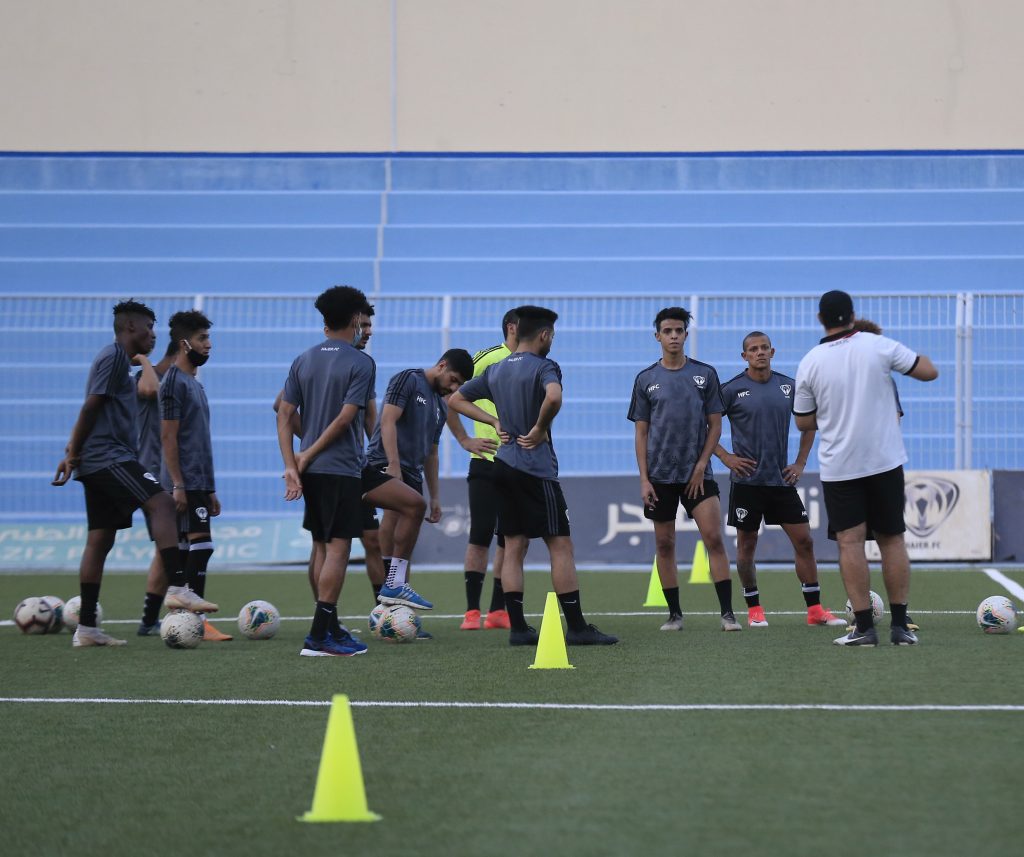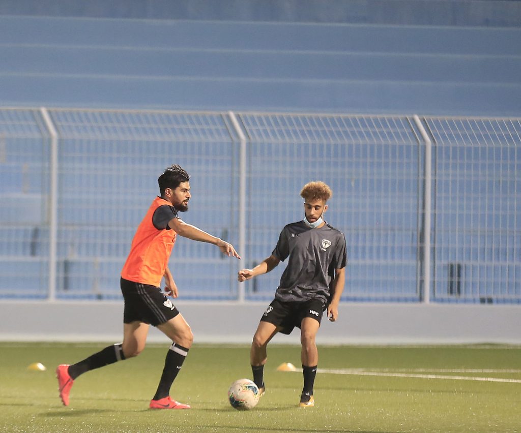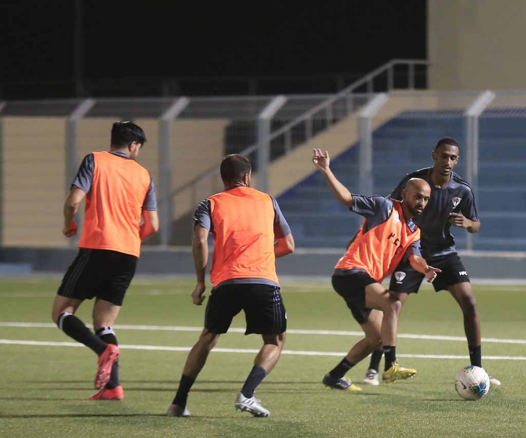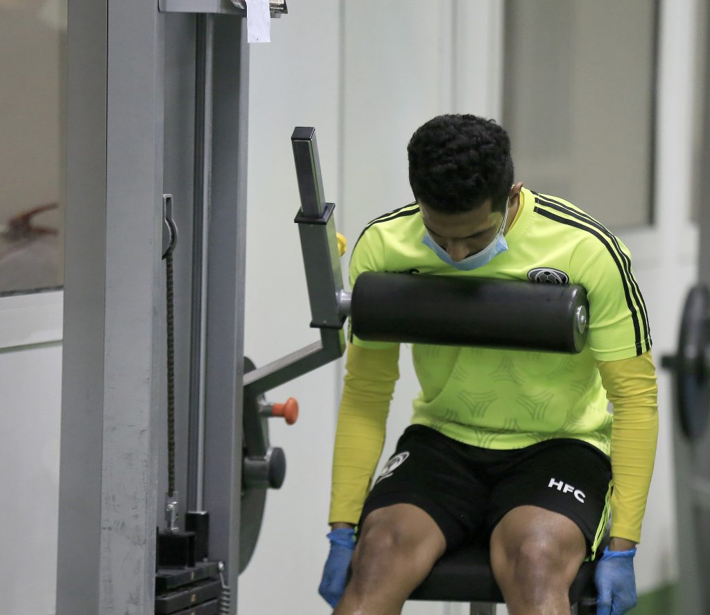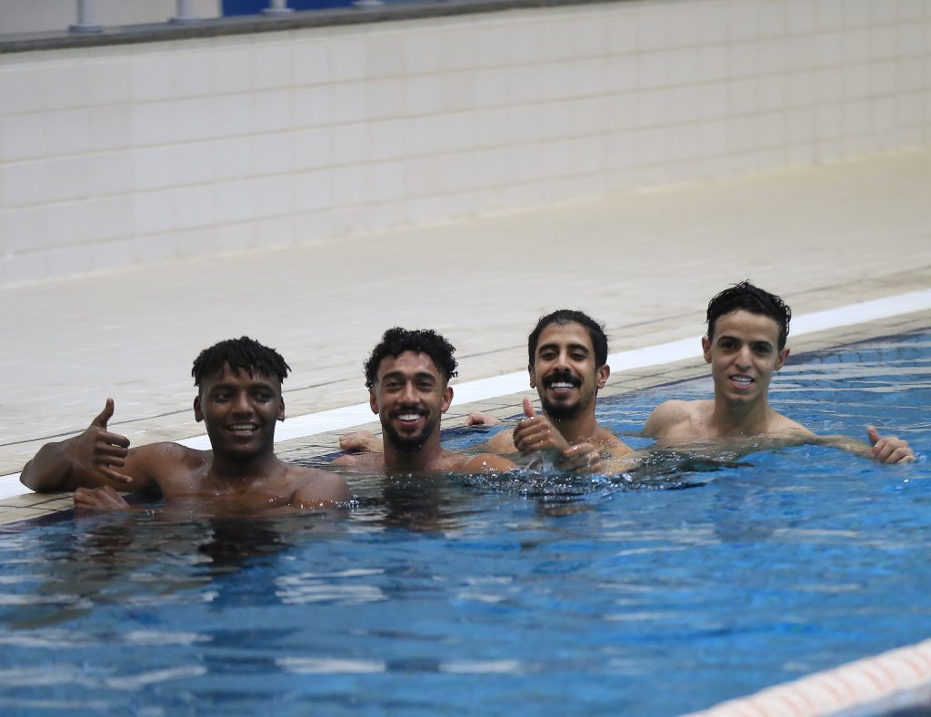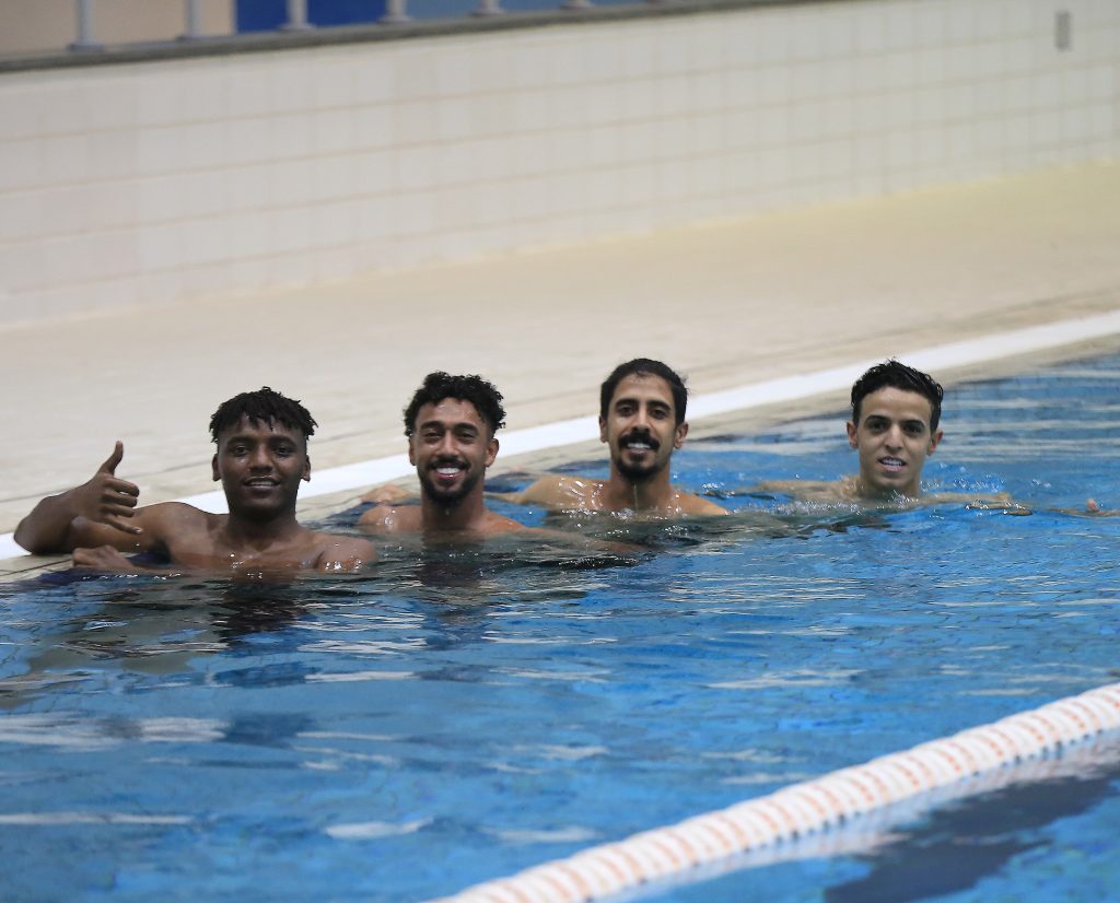 وقسم المدير الفني للفريق “محمد العياري” اللاعبين إلى مجموعتين حيث أدت المجموعة الأولى تدريبات استرجاعية في الملعب ، والمسبح في حين خضعت المجموعة الأخرى تدريبات في صالة الحديد والملعب ، كما خضع حراس المرمى لتدريبات خاصة مع مدرب الحراس .