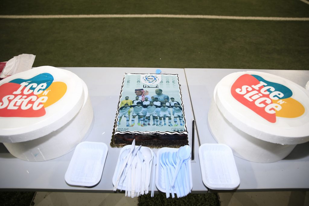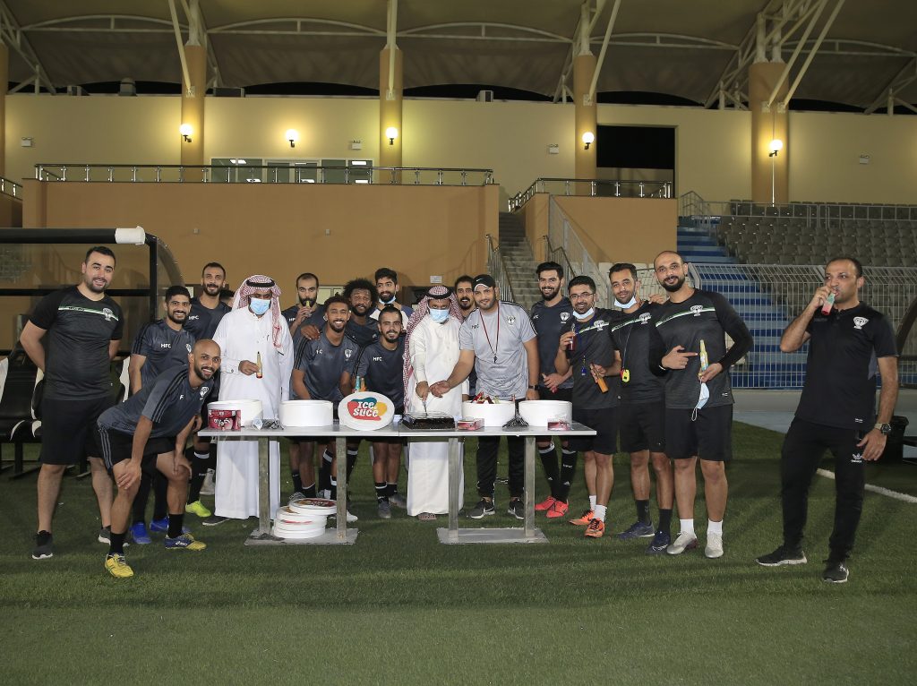 وبعد نهاية التدريبات أقامت إدارة الكرة احتفالية مبسطة بمناسبة صعود الفريق إلى دوري الأمير محمد بن سلمان للدرجة الأولى ، وساهم في الاحتفالية سلسلة عصيرات آيس سلايس .