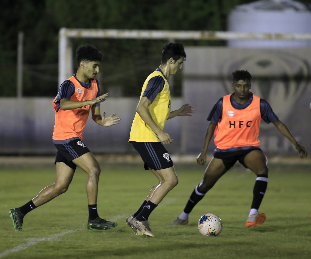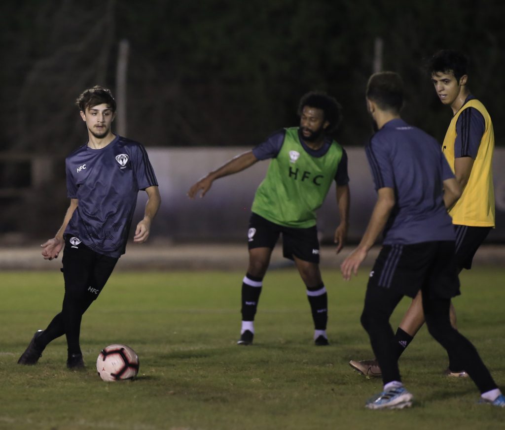 بعد ذلك انطلقت التدريبات بتمارين الاحماء واللياقة ، تلاها تدريبات فنية منوعة للجوانب الدفاعية والهجومية ، كما خضع حراس المرمى لتدريبات خاصة مع مدرب الحراس ، بعد ذلك أجريت مناورة كروية ، واختتمت التدريبات بتمارين الإطالة .