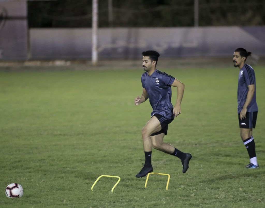 وبدأ المدير الفني للفريق “محمد العياري” التدريبات باجتماع مع اللاعبين بعد ذلك بدأت التدريبات بتمارين الاحماء واللياقة ، تلاها تدريبات فنية منوعة للجوانب الدفاعية والهجومية ، كما خضع حراس المرمى لتدريبات خاصة مع مدرب الحراس ، بعد ذلك أجريت مناورة كروية ، واختتمت التدريبات بتمارين الاطالة .