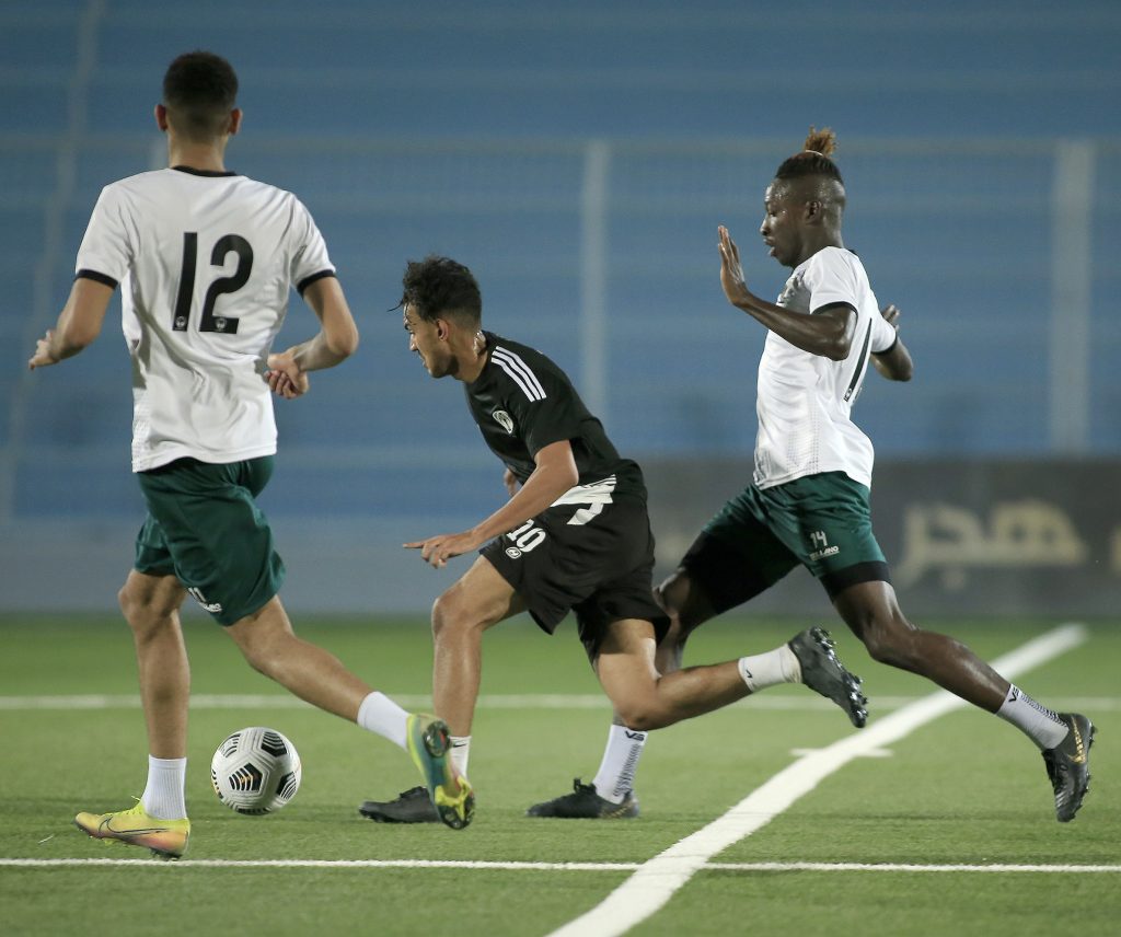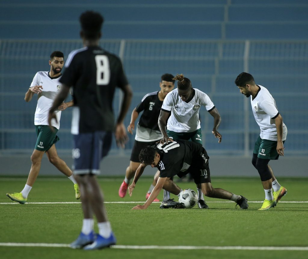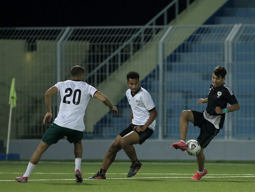 وقسم المدير الفني للفريق “محمد العياري” اللاعبين على مجموعتين ، حيث أدت المجموعة التي خاضت المباراة بشكل أساسي تمارين استرجاعية ، في حين خاض البدلاء واللاعبين الذين لم يشاركوا في المباراة مناورة أمام فريق درجة الشباب بالنادي .