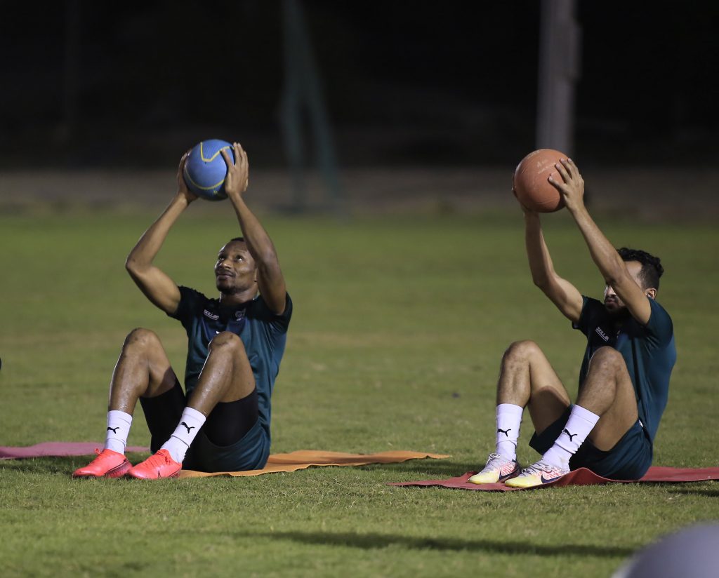 بعد ذلك انطلقت التدريبات التي قادها المدير الفني “محمدالعياري” بتمارين لياقية منوعة ، بعد ذلك طبق اللاعبين تدريبات للجوانب الدفاعية والهجومية ، كما خضع حراس المرمى لتدريبات خاصة مع مدرب الحراس ، واختتمت التدريبات بتقسيمة على منتصف الملعب .
