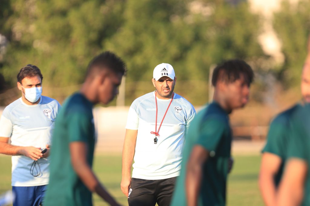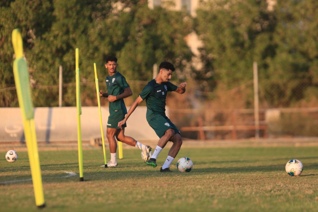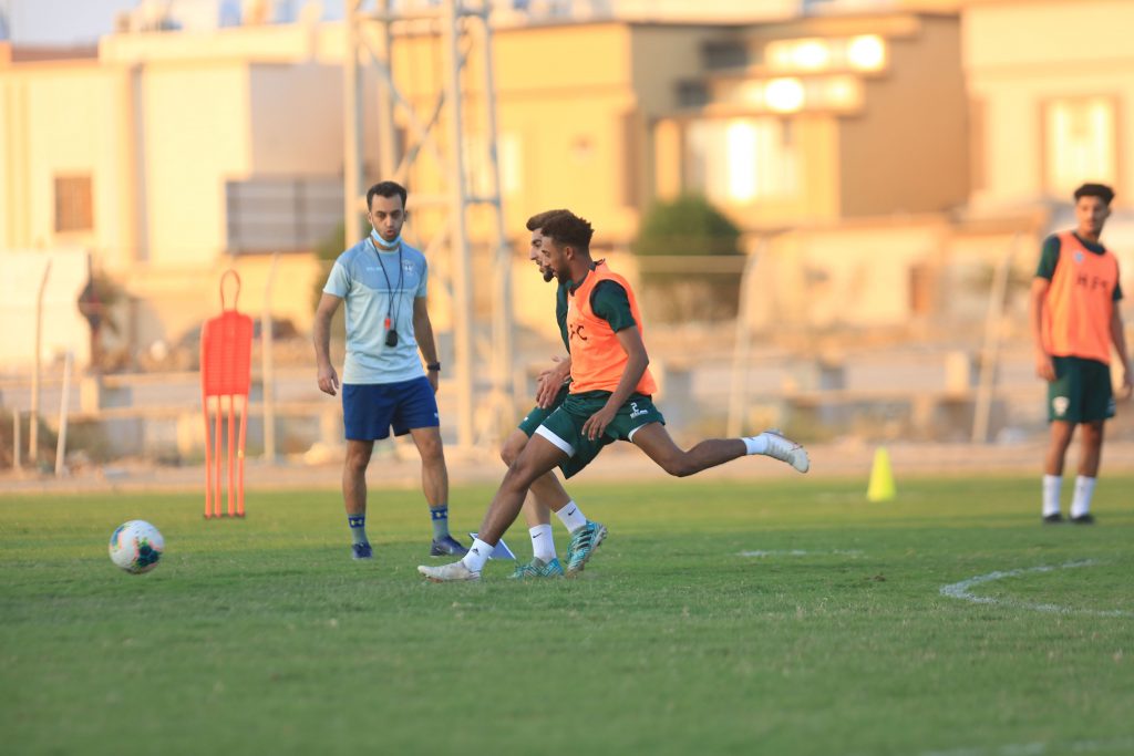 وقبل بداية التدريبات عقد المدير الفني للفريق “محمد العياري” اجتماعاً باللاعبين شرح خلاله وبالفيديو إيجابيات وسلبيات المباراة السابقة أمام الطائي .