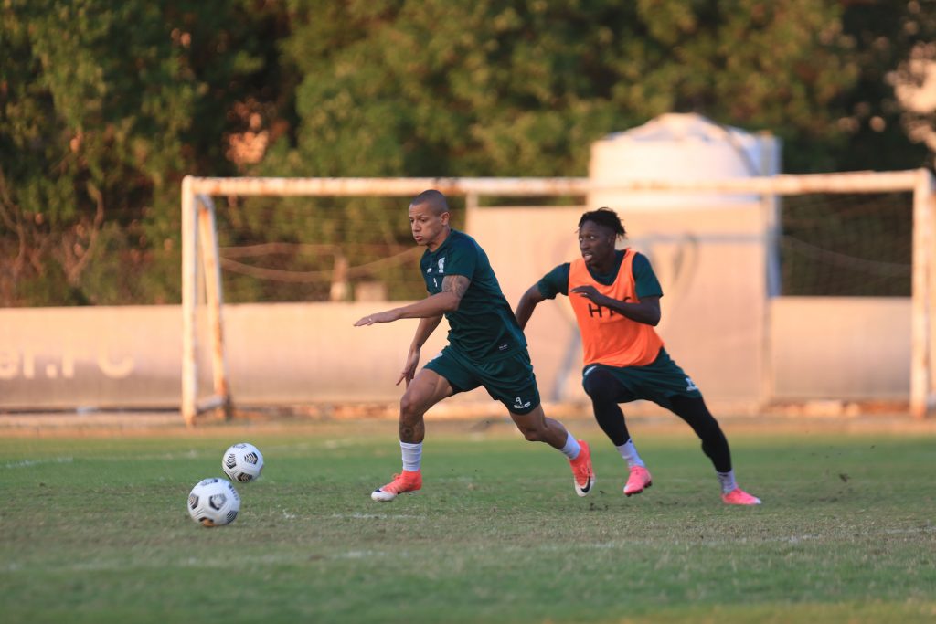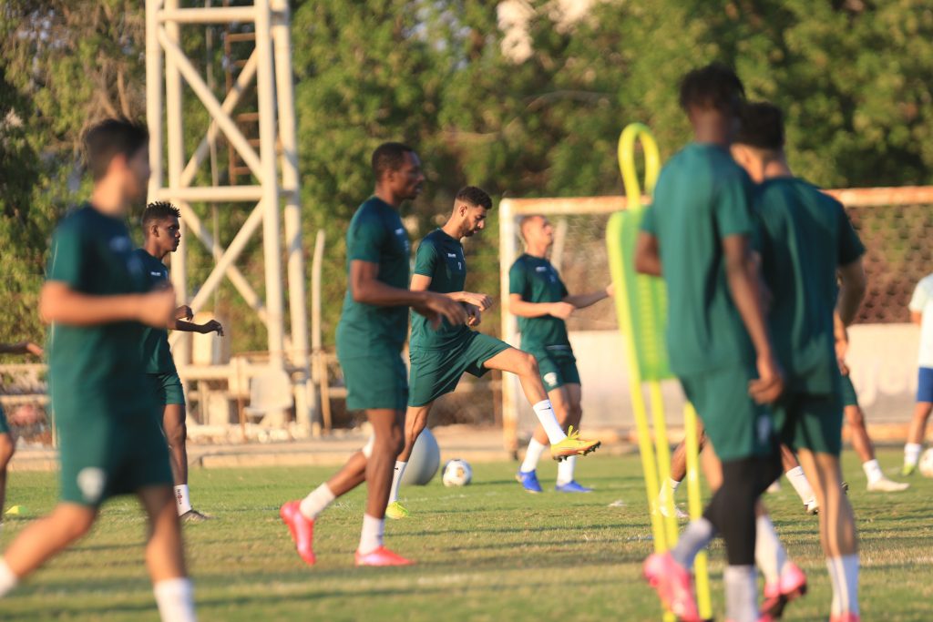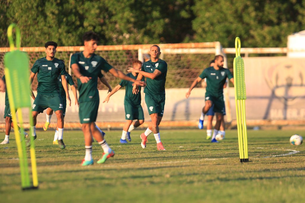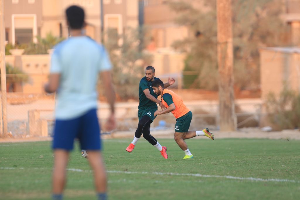 بعد ذلك انطلقت التدريبات بتمارين لياقية عبر محطات مختلفة ، بعد ذلك طبق اللاعبين عدداً من الجمل الفنية للتنظيم الدفاعي وبناء الهجمات عن طريق الأطراف والعمق ، واختتمت التدريبات بمناورة كروية .