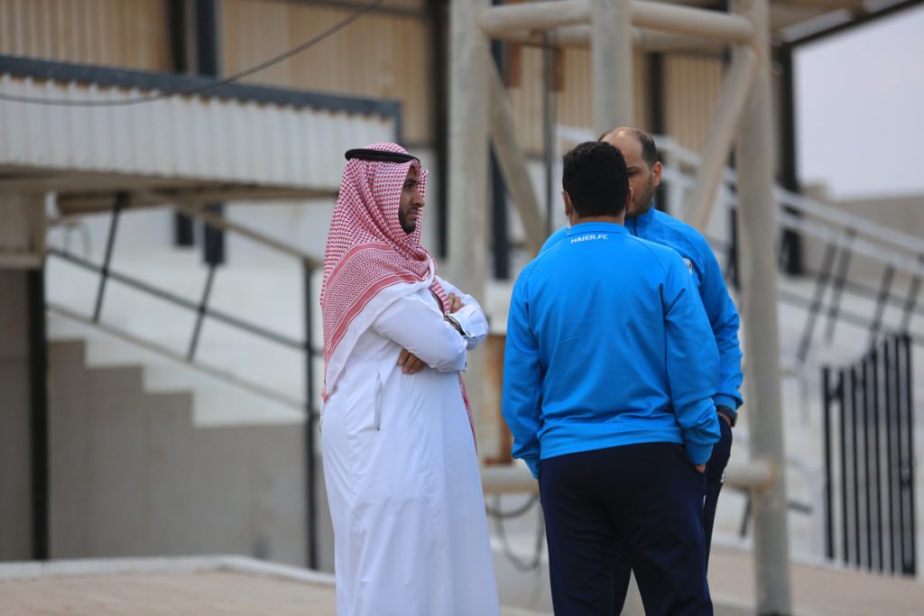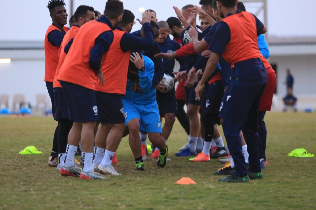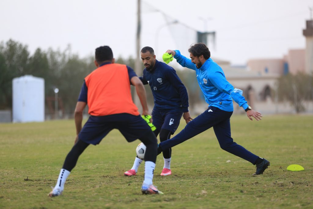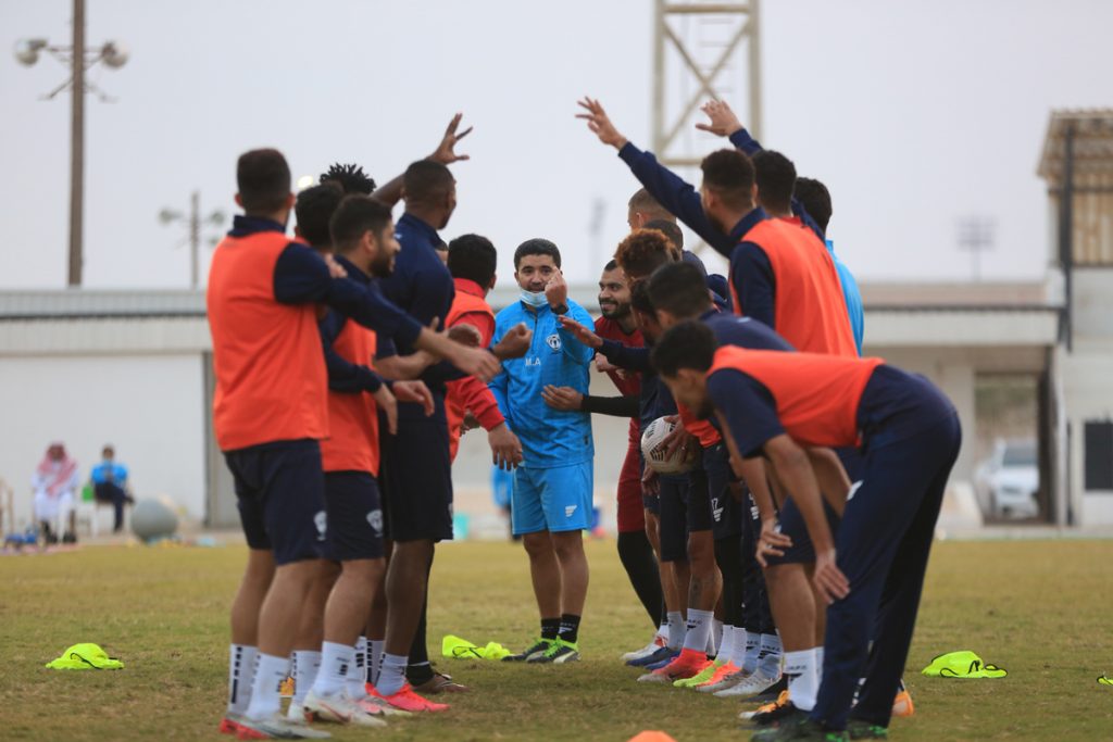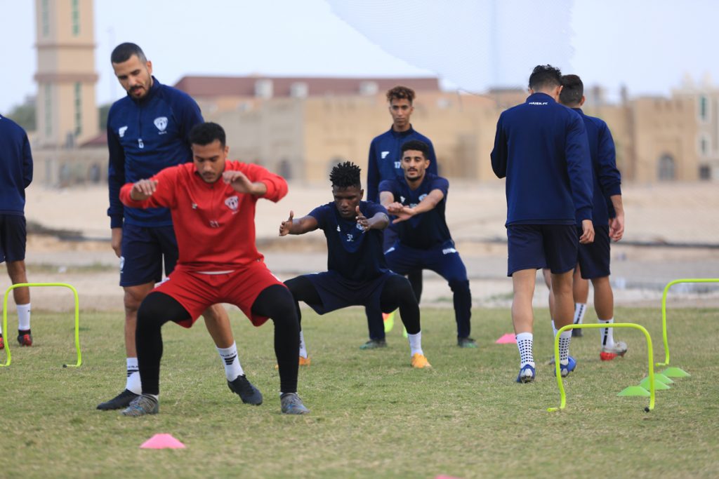 وقبل بداية التدريبات عقد المدير الفني للفريق “محمد العياري” اجتماعاً باللاعبين شرح خلاله وبالفيديو عدداً من الجمل الفنية .