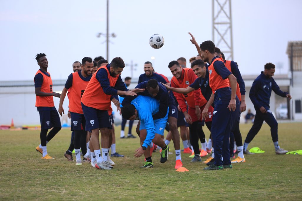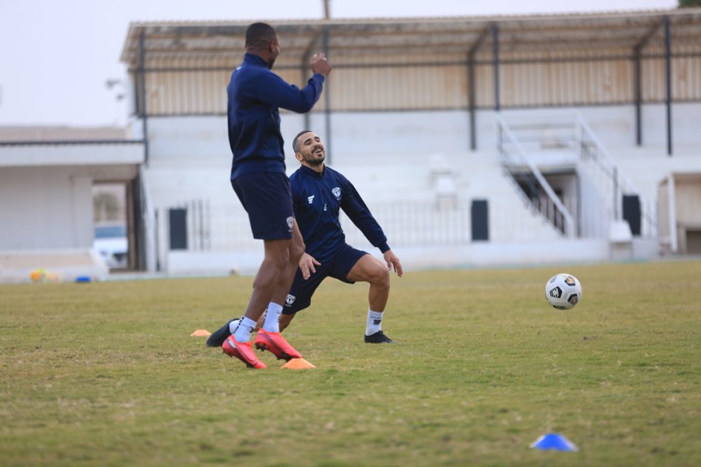 بعد ذلك انطلقت التدريبات بتمارين لياقية عبر محطات مختلفة ، بعد ذلك طبق اللاعبين عدداً من الجمل الفنية للجوانب الدفاعية والهجومية ، كما خضع حراس المرمى لتدريبات خاصة مع مدرب الحراس ، واختتمت التدريبات بتقسيمة على منتصف الملعب .