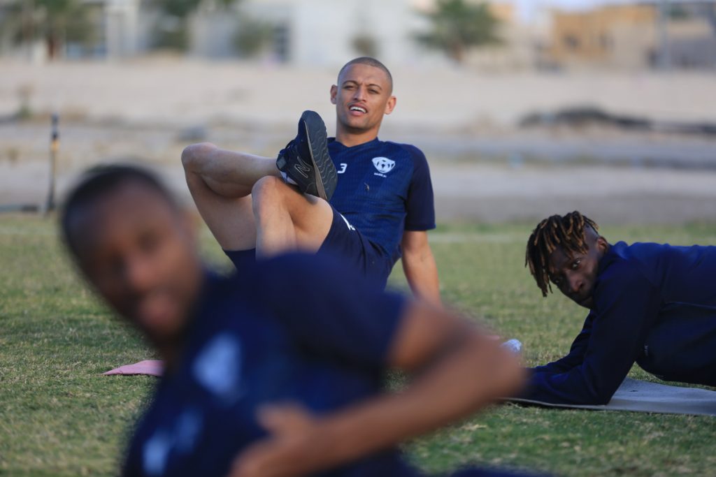 وبدأت التدريبات التي قادها المدير الفني “محمد العياري” بالجري حول الملعب بعد ذلك خضع اللاعبين لتدريبات لياقية عبر محطات مختلفة ، بعد ذلك طبق اللاعبين عدداً من الجمل الفنية للجوانب الدفاعية والهجومية ، كما خضع حراس المرمى لتدريبات خاصة مع مدرب الحراس ، واختتمت التدريبات بتقسيمة على منتصف الملعب .