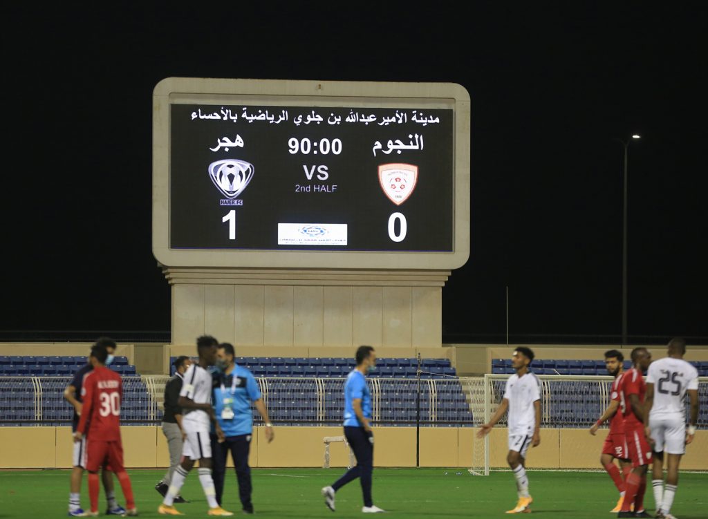 ضمن مباريات الجولة السابعة والعشرون من دوري الأمير محمد بن سلمان للدرجة الأولى كسب الفريق الأول لكرة القدم بنادي هجر مباراته أمام مضيفه النجوم بهدف دون مقابل في اللقاء الذي أقيم على ملعب الأمير عبدالله بن جلوي ، وجاء هدف هجر في الدقيقة التاسعة والثمانون من عمر المباراة عن طريق محمد صلاح .