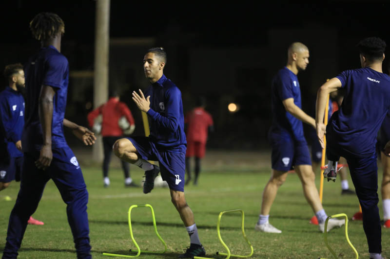 وقبل بداية التدريبات عقد المدير الفني للفريق “محمد العياري” اجتماعاً باللاعبين شرح خلاله وبالفيديو عدداً من الجمل الفنية ، بعد ذلك انطلقت التدريبات بتدريبات لياقية منوعة عبر محطات مختلفة ، تلاها تنفيذ عدداً من الجمل الفنية للجوانب الدفاعية والهجومية ، كما خضع حراس المرمى لتدريبات خاصة مع مدرب الحراس ، واختتمت التدريبات بمناورة كروية .