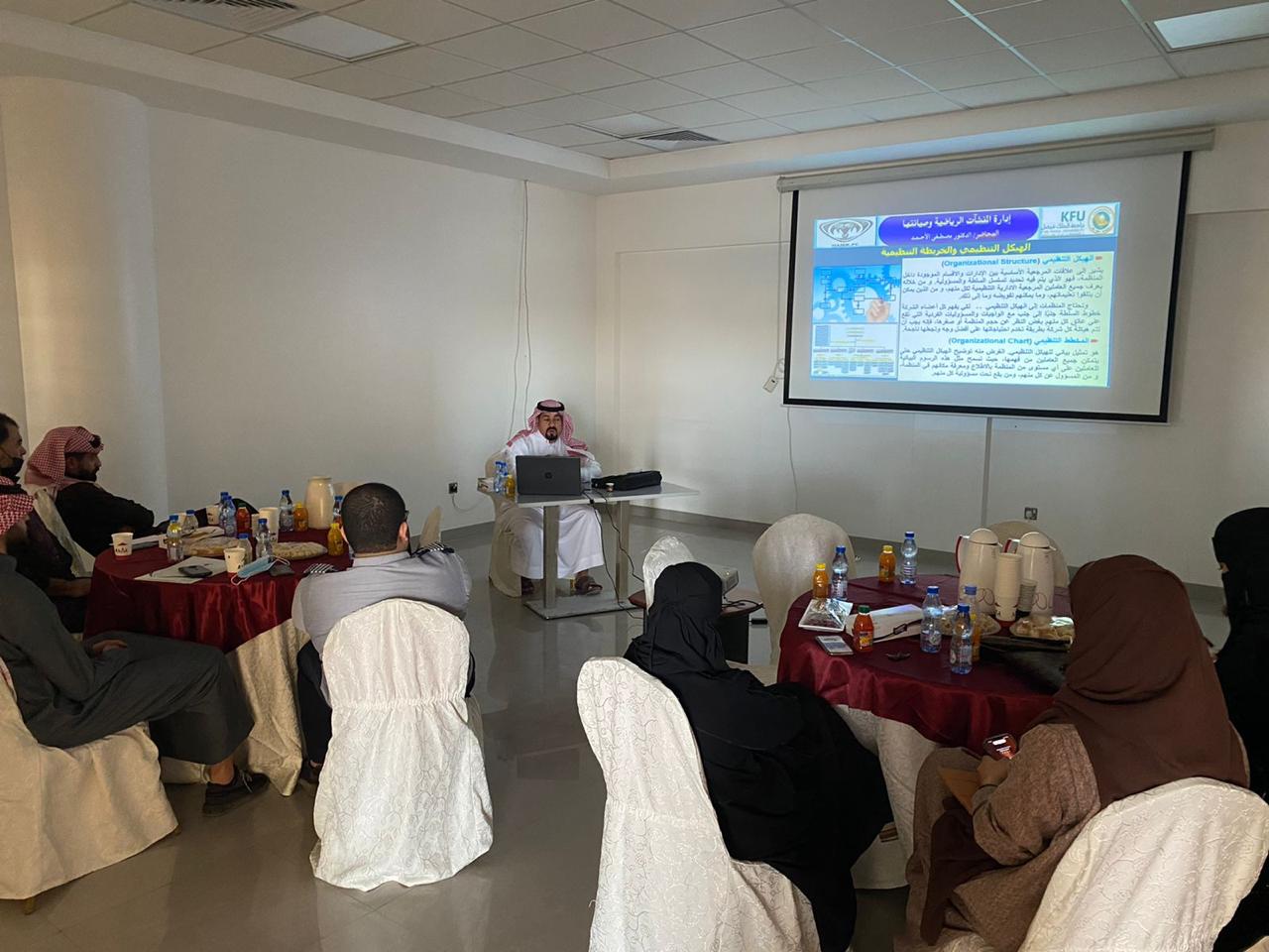 أقامت إدارة الموارد البشرية بنادي هجر وبالتعاون مع قسم التربية البدنية بكلية التربية بجامعة الملك فيصل ورشة عمل تدريبية بعنوان إدارة المنشآت الرياضية وصيانتها” قدمها الدكتور مصطفى الأحمد الاستاذ المساعد في الإدارة الرياضية بقسم التربية البدنية بجامعة الملك فيصل .