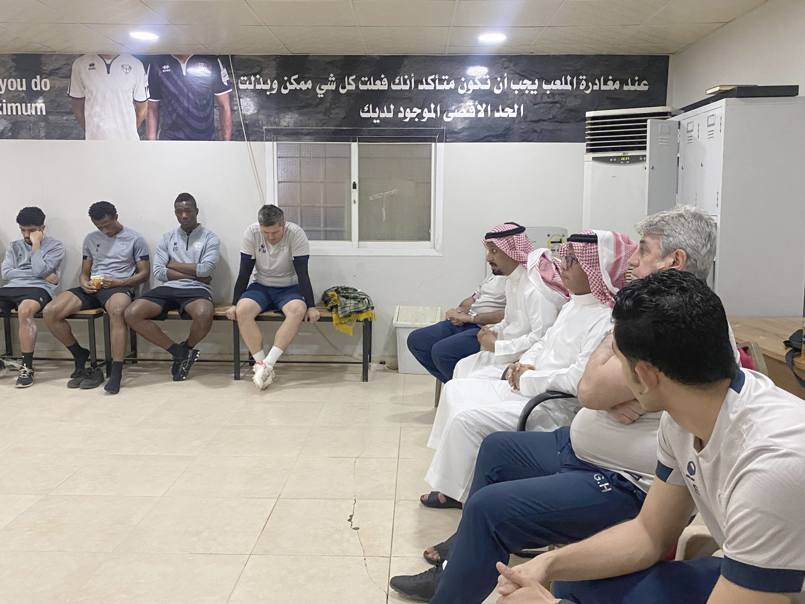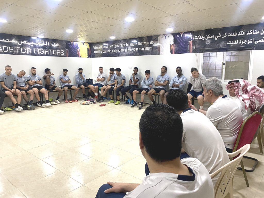 وقبل انطلاق التدريبات عقد رئيس مجلس إدارة النادي الأستاذ حمد العريفي اجتماعاً باللاعبين بحضور الجهازين الفني والإداري أشاد خلاله بالمستوى الذى ظهر به الفريق في المباراة السابقة أمام الخليج مطالباً جميع اللاعبين بمواصلة المستويات المتميزة المقرونة بالنتائج خلال المباريات المتبقية من الدوري .