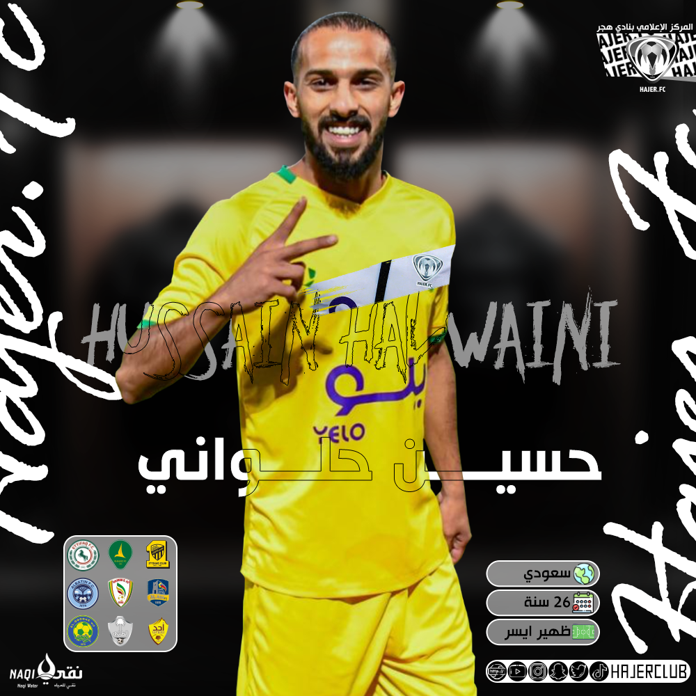 تعاقدت إدارة نادي هجر برئاسة الاستاذ حمد العريفي مع لاعب الظهير الأيسر “حسين حلواني” وذلك لتمثيل الفريق الأول لكرة القدم في موسم ٢٠٢٢-٢٠٢٣م .