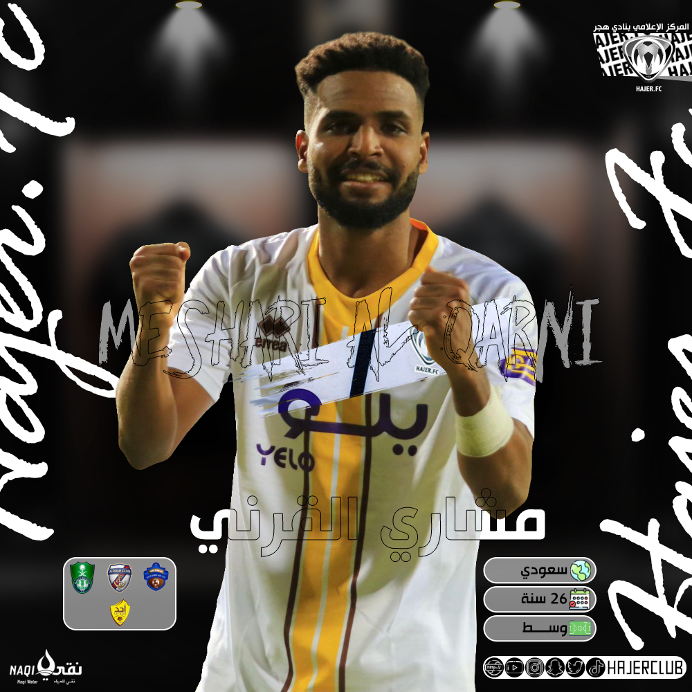 تعاقدت إدارة نادي هجر برئاسة الأستاذ حمد العريفي مع لاعب الوسط “مشاري القرني” وذلك لتمثيل الفريق الأول لكرة القدم في موسم ٢٠٢٢-٢٠٢٣م .