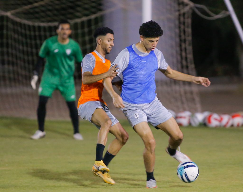 وبدأ المدير الفني للفريق “محمد العياري” التدريبات بتمارين لياقية عبر محطات مختلفة شملت الجري على الكثبان الرملية واختبارات السرعات والقفز على الحواجز وتدريبات القوة ، بعد ذلك طبق اللاعبين تدريبات منوعة باستخدام الكرة نفذ خلالها عدداً من الجمل الفنية ، كما خضع حراس المرمى لتدريبات خاصة مع مدرب الحراس ، واختتمت التدريبات بتمارين الإطالة .