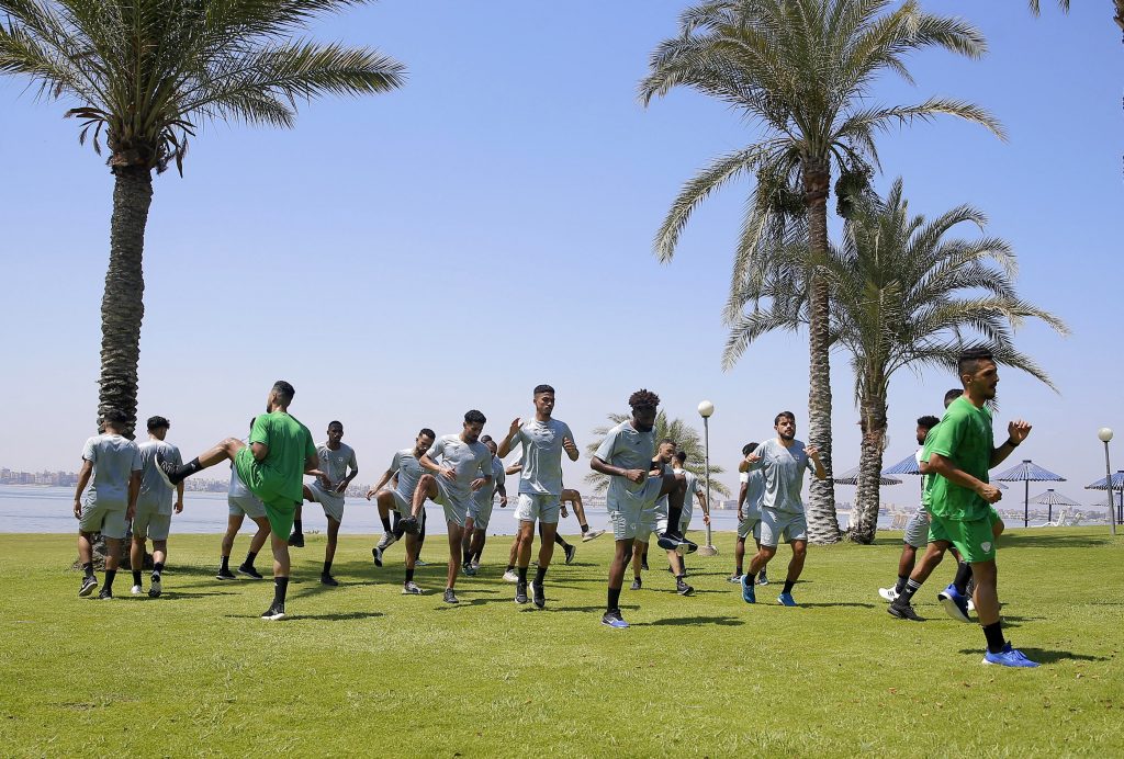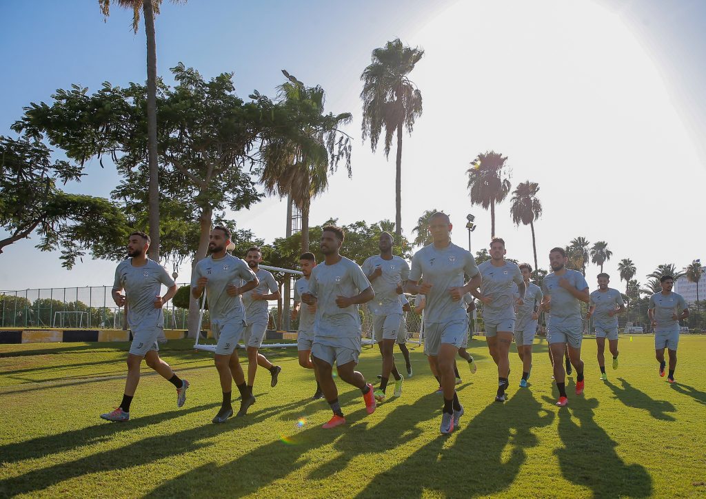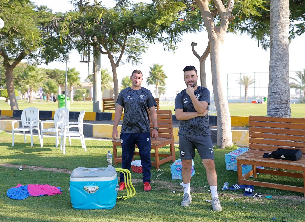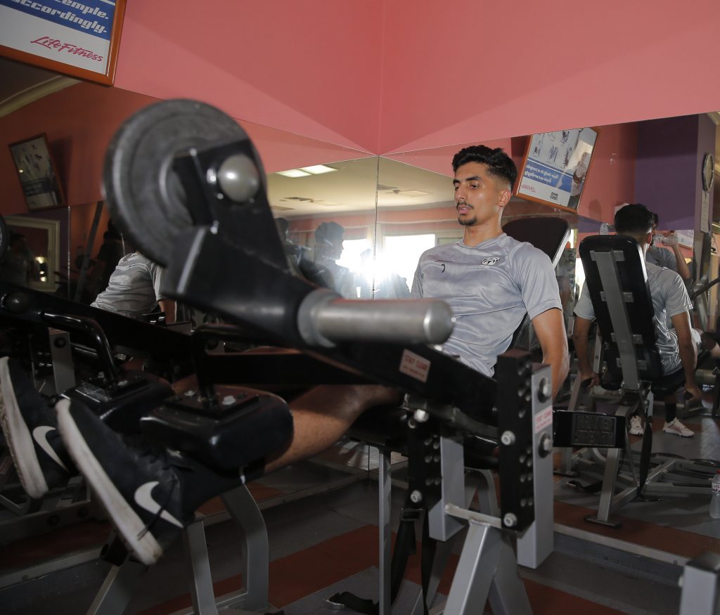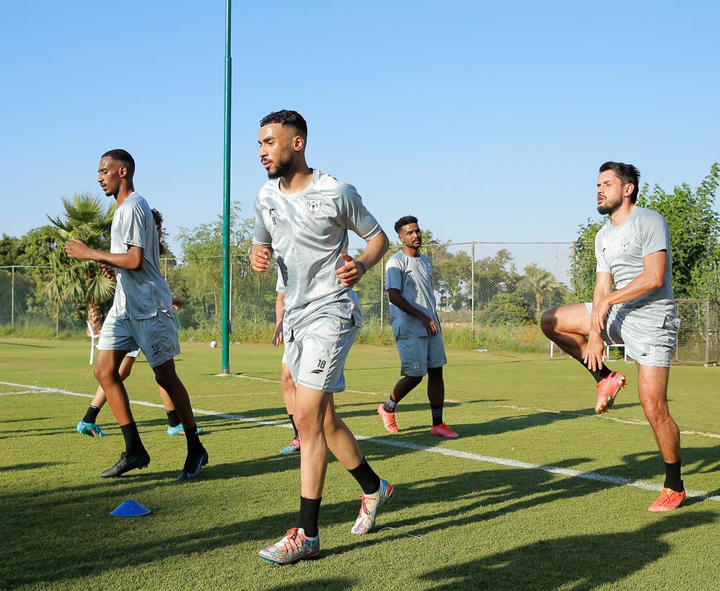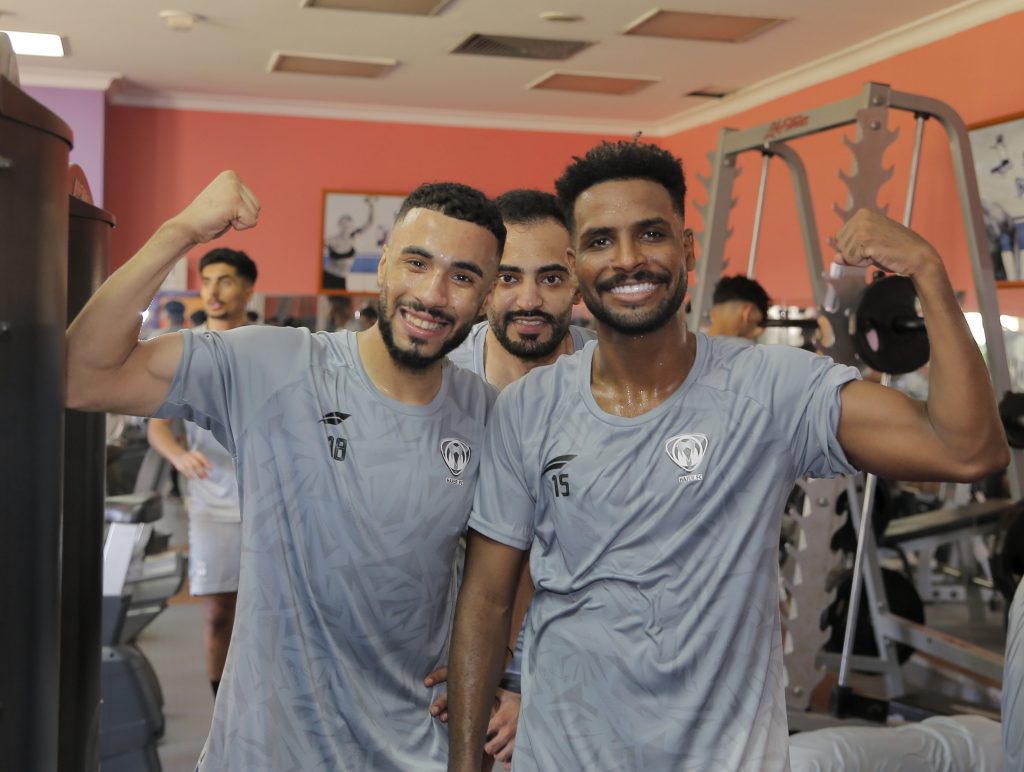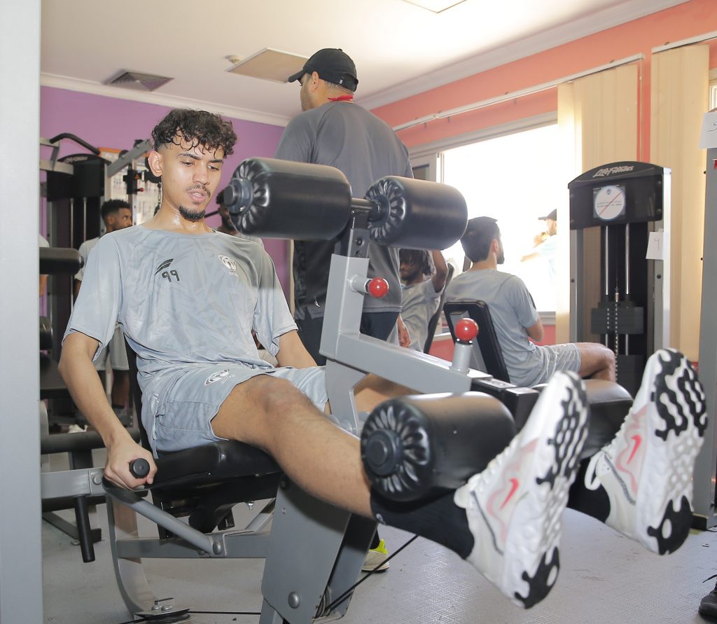 انطقلت التدريبات الصباحية بالجري على الشاطئ ، بعد ذلك أدى اللاعبين تدريبات منوعة في صالة الحديد ، واختتمت التدريبات بتمارين الإطالة والمسبح .