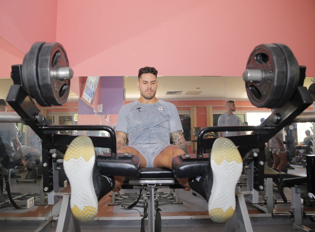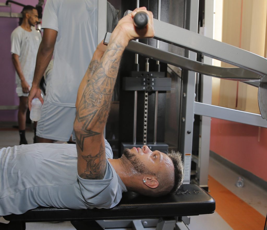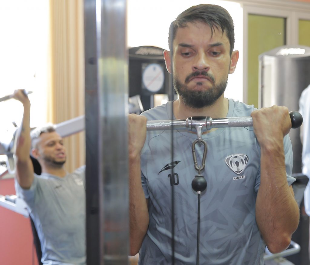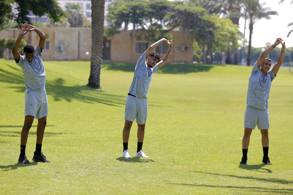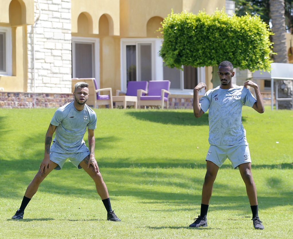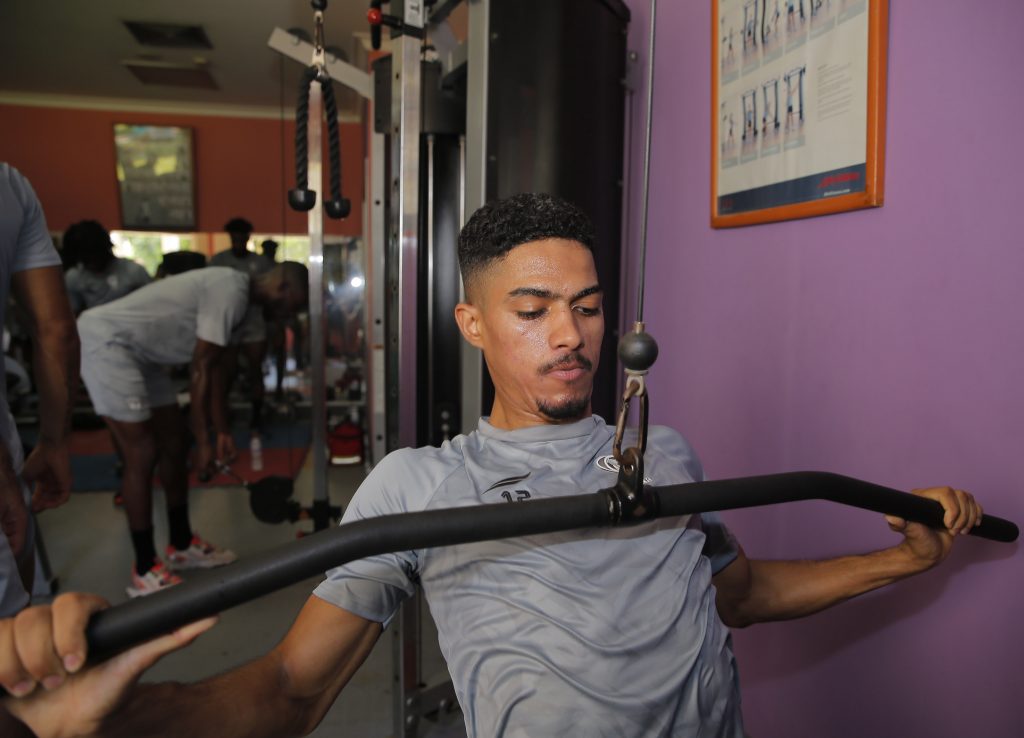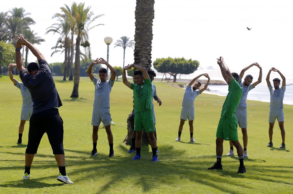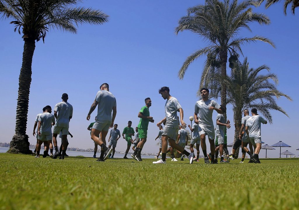 انطقلت التدريبات الصباحية بالجري على الشاطئ ، بعد ذلك أدى اللاعبين تدريبات منوعة في صالة الحديد ، واختتمت التدريبات بتمارين الإطالة والمسبح .