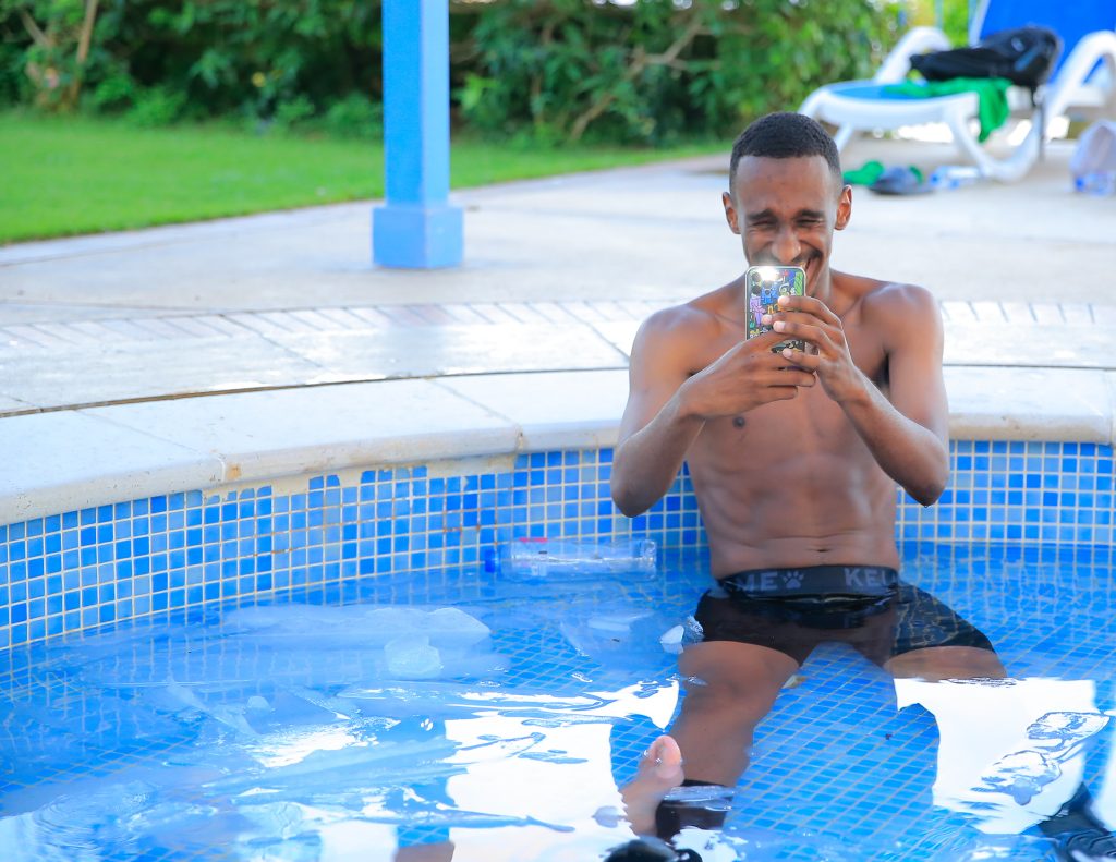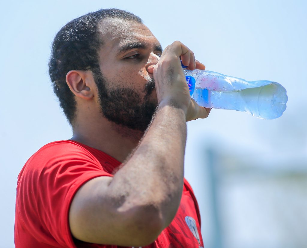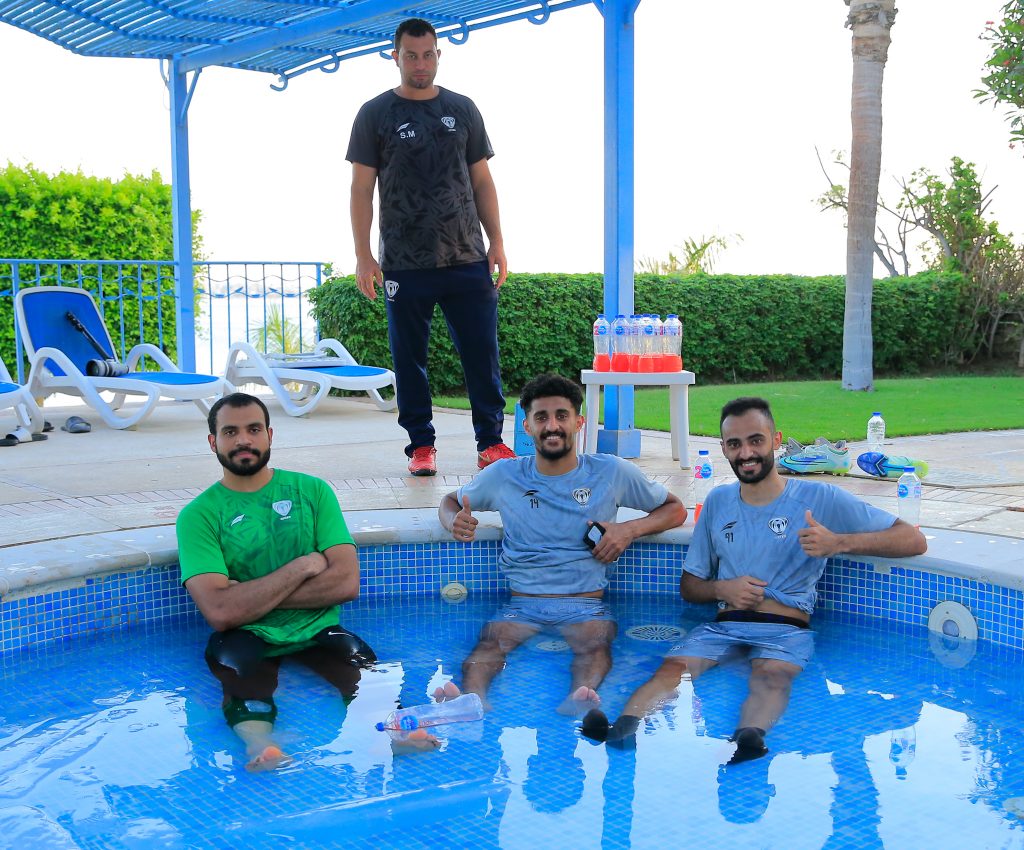 وبعد نهاية التدريبات خضع اللاعبين لجلسة استشفاء في حمام الثلج .
