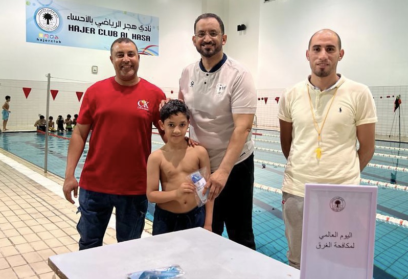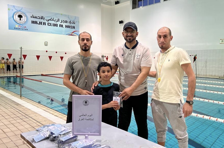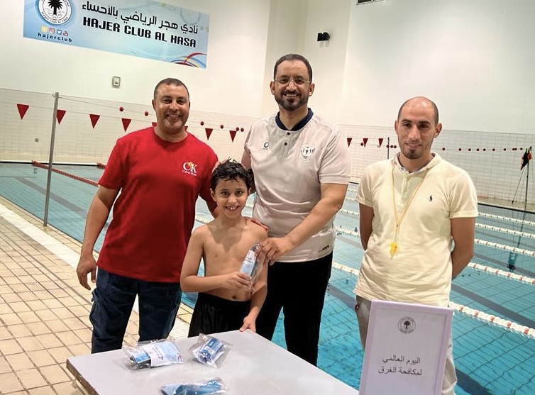 نظمت إدارة الخدمة المجتمعية بنادي هجر برنامجاً بمناسبة اليوم العالمي لمكافحة الغرق في مسبح النادي بحضور عضو مجلس إدارة النادي الاستاذ بندر السلطان .