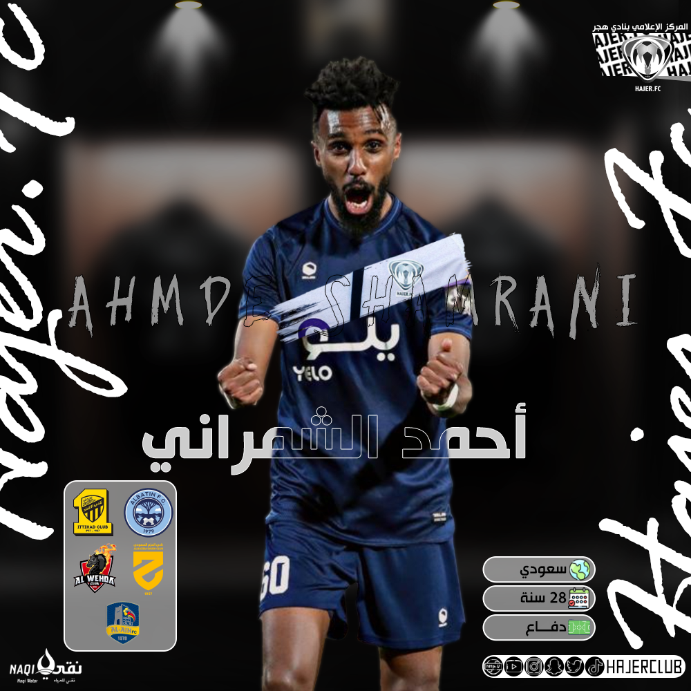 تعاقدت إدارة نادي هجر برئاسة الأستاذ حمد العريفي مع المدافع “أحمد الشمراني” وذلك لتمثيل الفريق الأول لكرة القدم في موسم ٢٠٢٢-٢٠٢٣م .