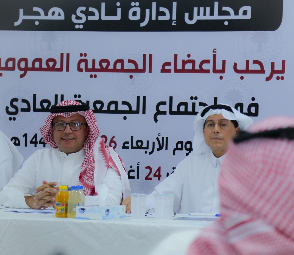 عقدت مساء اليوم الأربعاء 24 أغسطس الجمعية العمومية العادية لنادي هجر بمقر النادي بحضور رئيس مجلس الإدارة الأستاذ حمد بن عبدالله العريفي وممثلي مكتب وزارة الرياضة وأعضاء مجلس إدارة النادي وأعضاء الجمعية العمومية.
