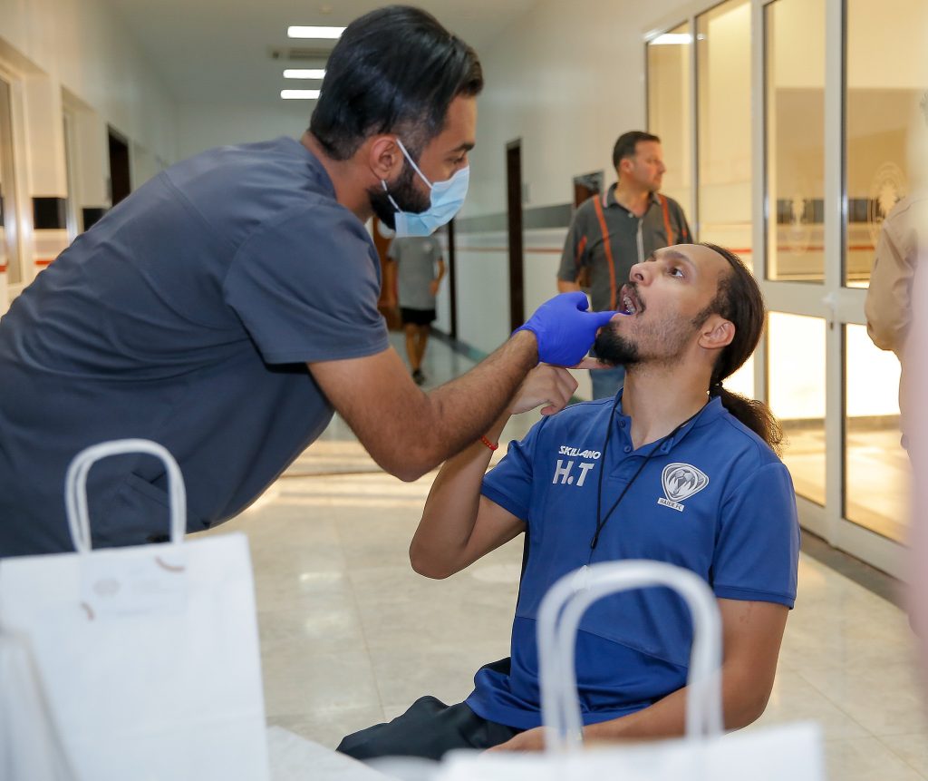 بالتعاون مع عيادات Callisto نظمت إدارة المسؤولية الاجتماعية بنادي هجر حملة صحية للمحافظة على الأسنان حيث قام فريق طبي بفحص أسنان زوار النادي ومرتاديه وتقديم عدد من الأدوات الخاصة بالعناية بالأسنان .
