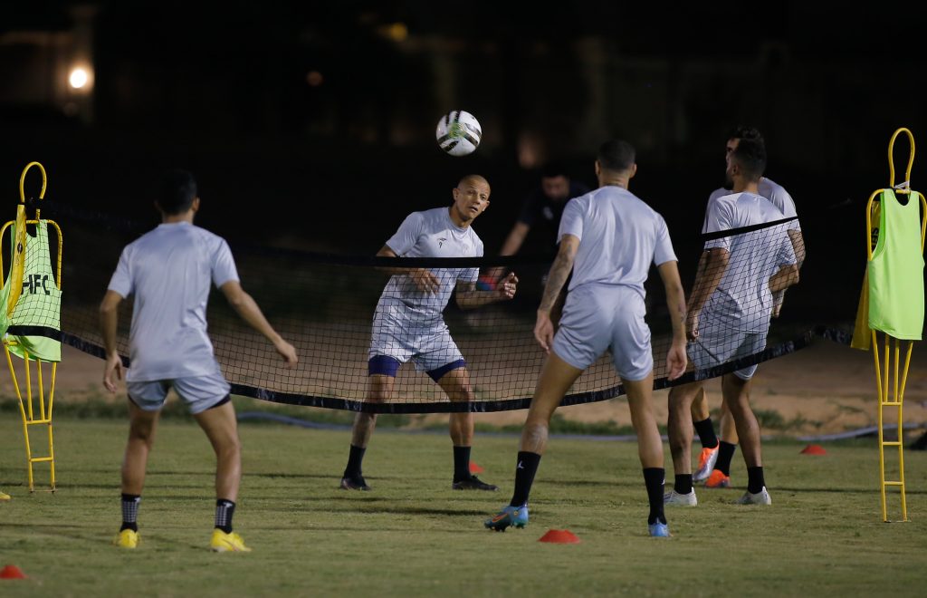 وبدأت التدريبات بالجري حول الملعب ، تبعها تدريبات لياقية منوعة ، بعد ذلك طبق اللاعبين عدداً من الجمل الفنية للجوانب الدفاعية والهجومية ، كما خضع حراس المرمى لتدريبات خاصة مع مدرب الحراس ، واختتمت التدريبات بتقسيمة على منتصف الملعب .