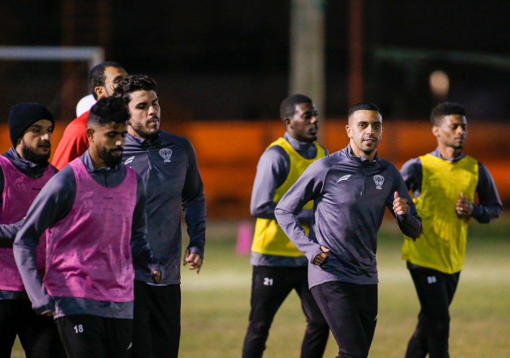 بعد ذلك استعرض المدير الفني للفريق “محمد العياري” اجتماعاً باللاعبين استعرض خلاله برنامج الفريق الذي يسبق مباراة العربي في افتتاح الدور الثاني من دوري يلو .