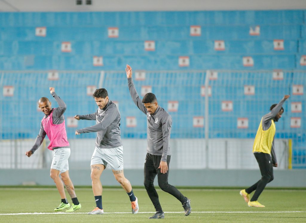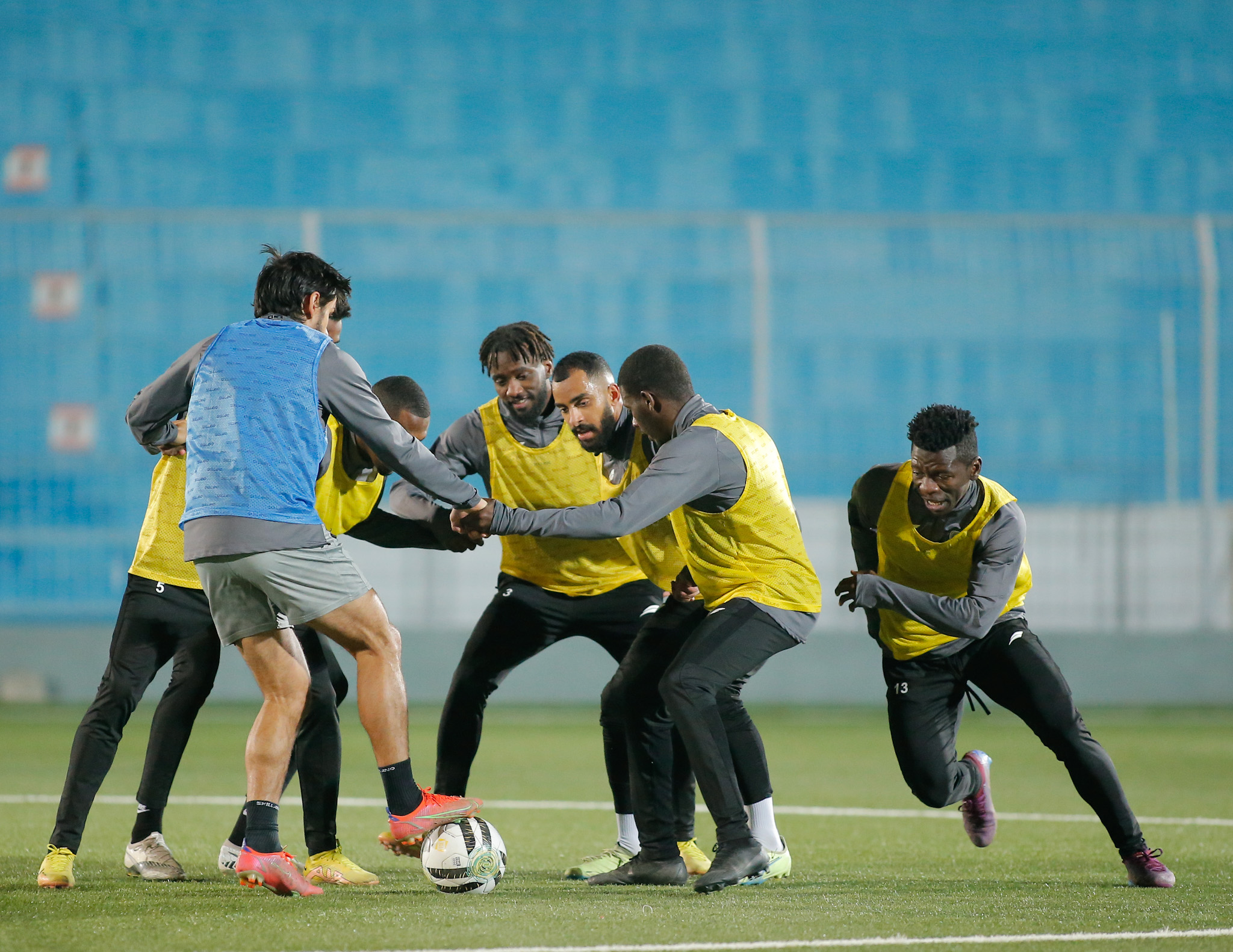 وانطلقت التدريبات بتمارين الاحماء واللياقة بعد ذلك طبق اللاعبين عدداً من الجمل الفنية للجوانب الدفاعية والهجومية ، كما خضع حراس المرمى لتدريبات خاصة مع مدرب الحراس ، واختتمت التدريبات بمناورة كروية .
