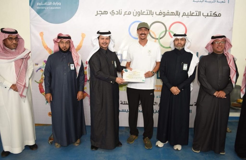 وبعد نهاية الفعالية قام مدير عام التعليم بالأحساء الاستاذ حمد العيسى بتكريم نادي هجر بمناسبة استضافته الفعالية ، حيث تسلم رئيس مجلس إدارة النادي الاستاذ حمد العريفي الدرع التذكاري الخاص بهذه المناسبة .