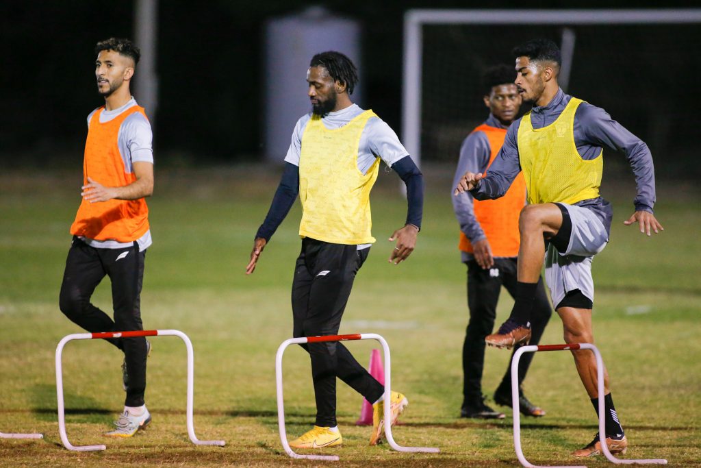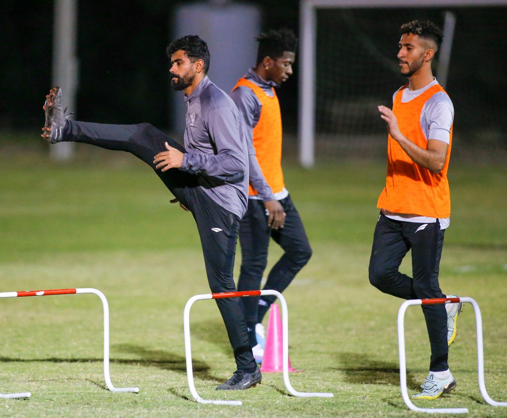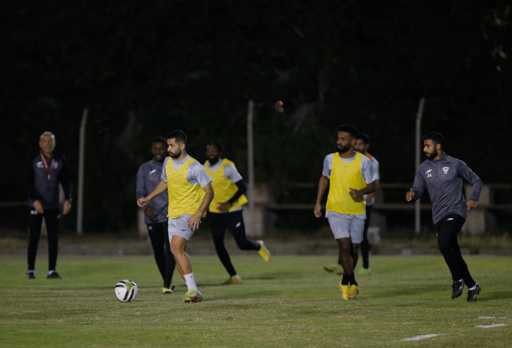 وبدأت التدريبات بتمارين الإحماء واللياقة ، بعد ذلك طبق اللاعبين عدداً من الجمل الفنية للجوانب الدفاعية والهجومية ، كما خضع حراس المرمى لتدريبات خاصة مع مدرب الحراس ، بعد ذلك أجريت مناورة كروية ، واختتمت التدريبات بتمارين الإطالة .