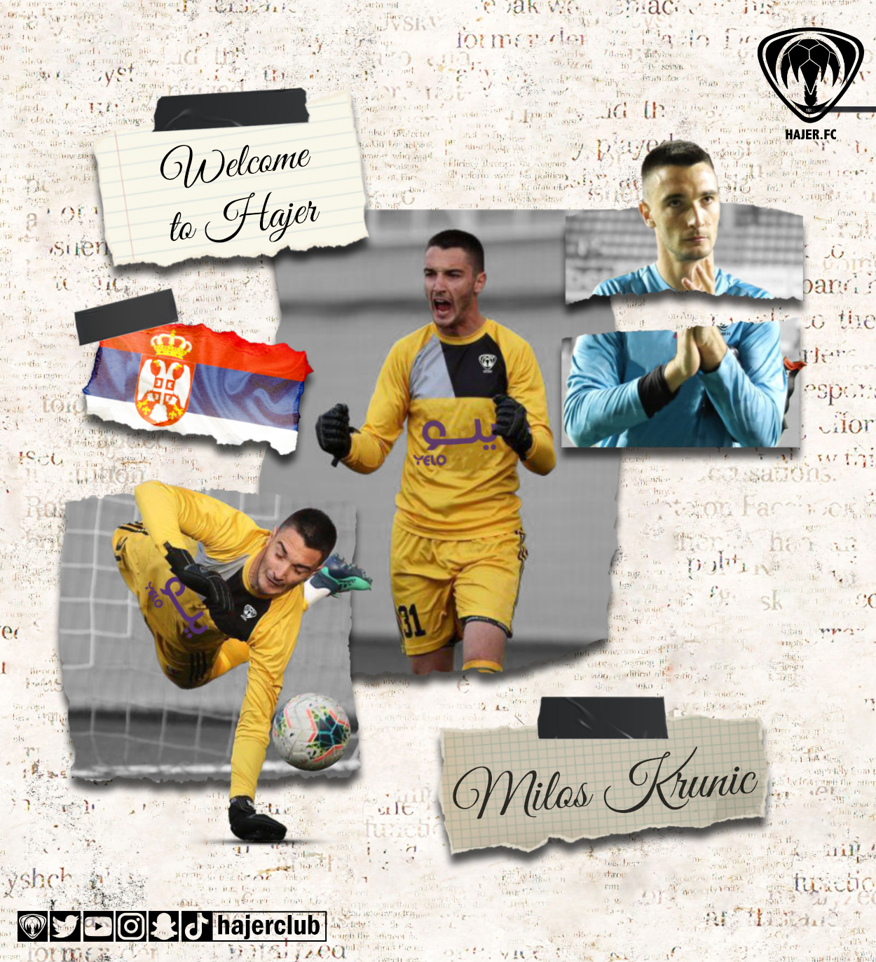 وقعت إدارة نادي هجر برئاسة الاستاذ حمد العريفي عقداً مع حارس المرمى الصربي “ميلوس كرونيتش” وذلك لتمثيل الفريق الأول لكرة القدم في الموسم الرياضي ٢٠٢٣-٢٠٢٤م .
