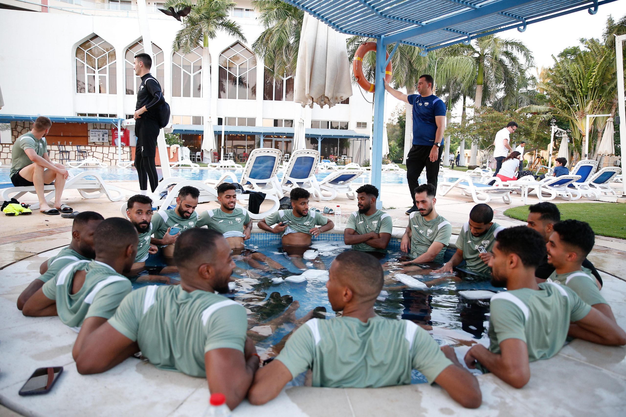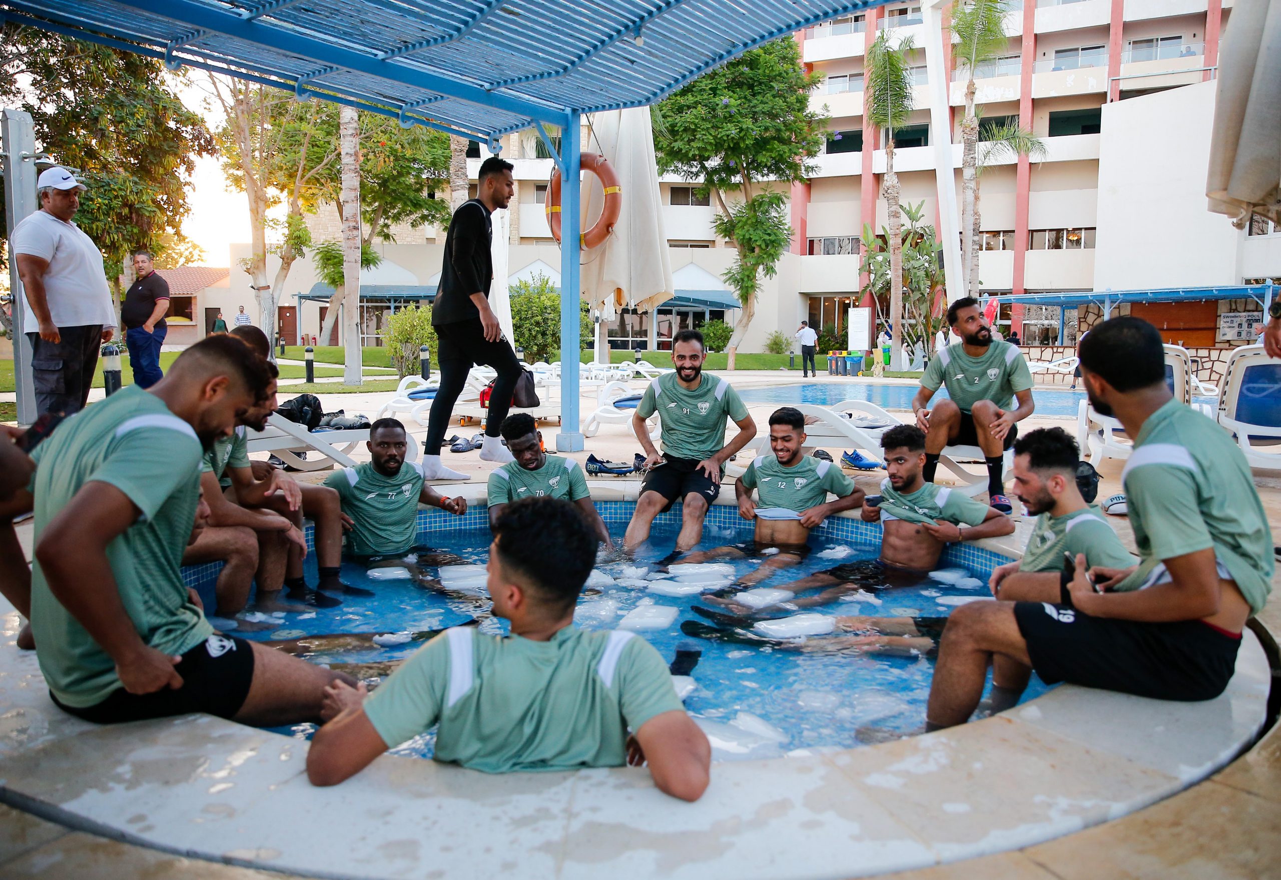 وفي نهاية التدريبات خضع اللاعبين لجلسات استشفاء في حمام الثلج لتخفيف الإرهاق