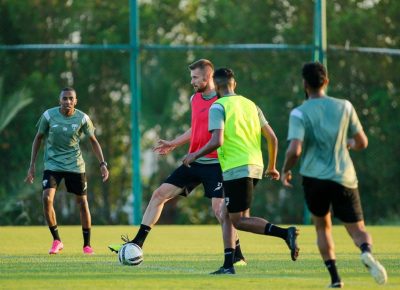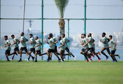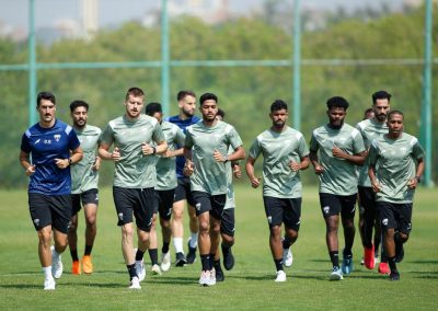 وخصص الجهاز الفني الفترة الصباحية لقياس الأوزان والعضلات واختبارات المرونة في صالة الحديد ، بعد ذلك توجه اللاعبين للملعب وطبقوا تدريبات لياقية شملت للجري بسرعات مختلفة وتمارين الإطالة .