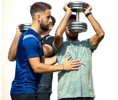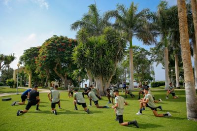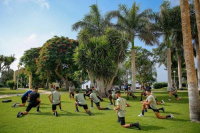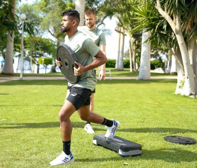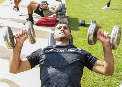 وخصص الجهاز الفني الفترة الصباحية للتدريبات البدنية من خلال عدة تدريبات أجراها اللاعبين في حديقة المنتجع ، فيما اختتمت الحصة الصباحية بتمارين الإطالة