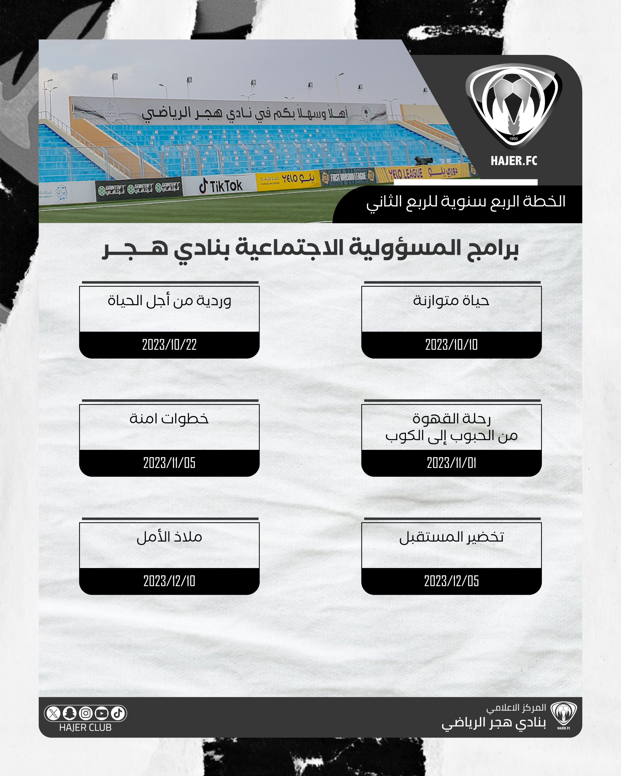 برامج المسؤولية الاجتماعية بنادي #هجر الخطة الربع سنوية “الربع الثاني