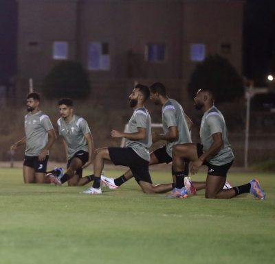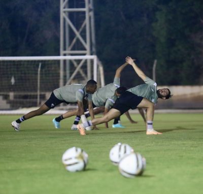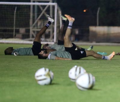 بعد ذلك انطلقت التدريبات بالجري حول الملعب ، تبعها تدريبات استرجاعية منوعة ، واختتمت التدريبات بتمارين الإطالة
