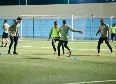 وبدأت التدريبات بتمارين لياقية عبر محطات مختلفة ، بعد ذلك طبق اللاعبين عدداً من الجمل الفنية للجوانب الدفاعية والهجومية ، كما خضع حراس المرمى لتدريبات خاصة مع مدرب الحراس ، بعد ذلك أجريت مناورة كروية ، واختتمت التدريبات بتمارين الإطالة .