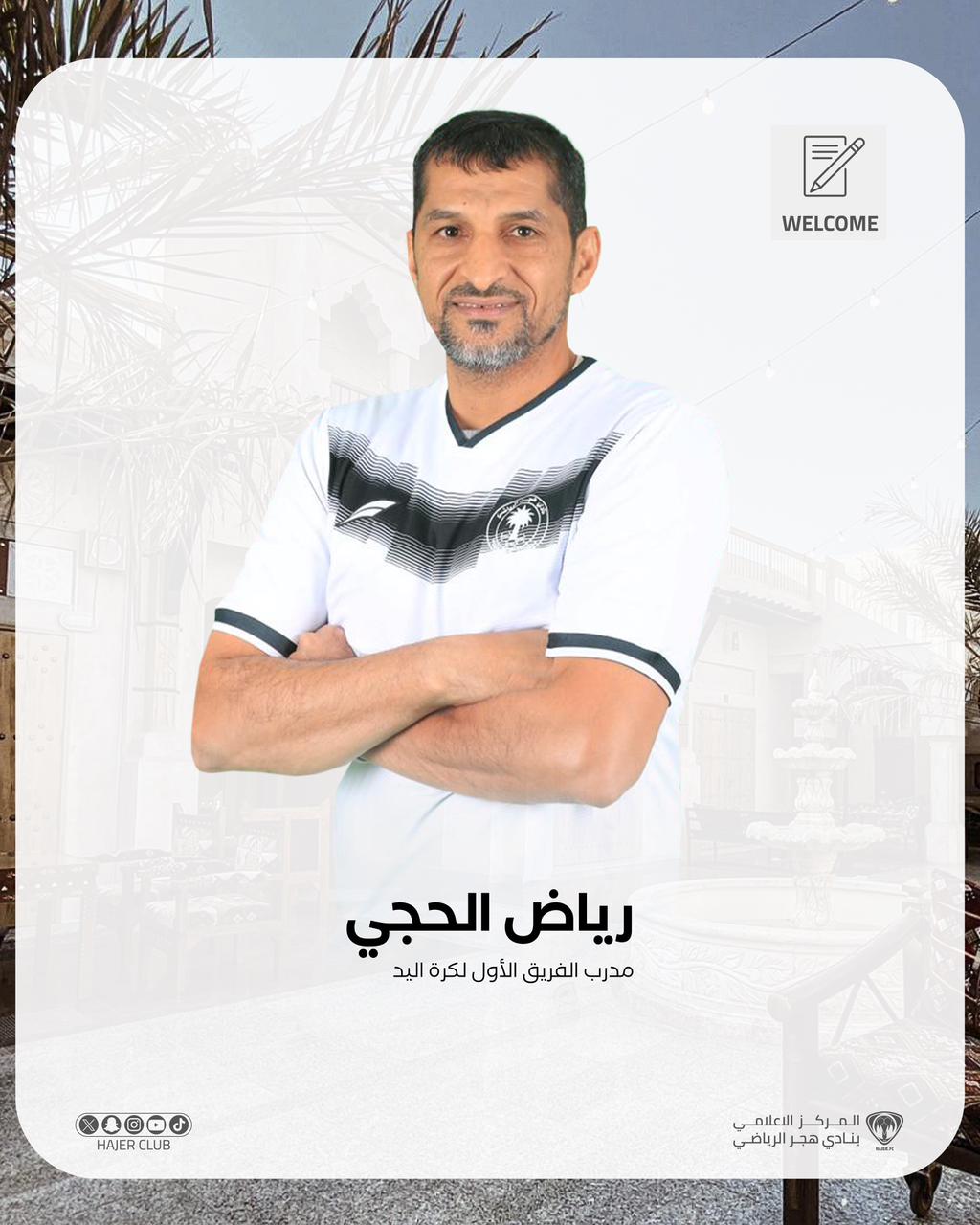 تعاقدت إدارة نادي هجر مع المدرب رياض الحجي وذلك لقيادة الفريق الأول لكرة اليد في بقية منافسات الموسم الرياضي الحالي . وسبق للحجي أن مثل هجر لاعباً وساهم معه في الصعود للدوري الممتاز لكرة اليد.