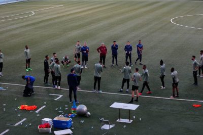وبدأت التدريبات بتمارين لياقية عبر محطات مختلفة ، تبعها تدريبات فنية للتنظيم الدفاعي وبناء الهجمات عن طريق الأطراف والعمق ، كما خضع حراس المرمى لتدريبات خاصة مع مدرب الحراس ، بعد ذلك أجريت مناورة كروية ، واختتمت التدريبات بتمارين الإطالة .