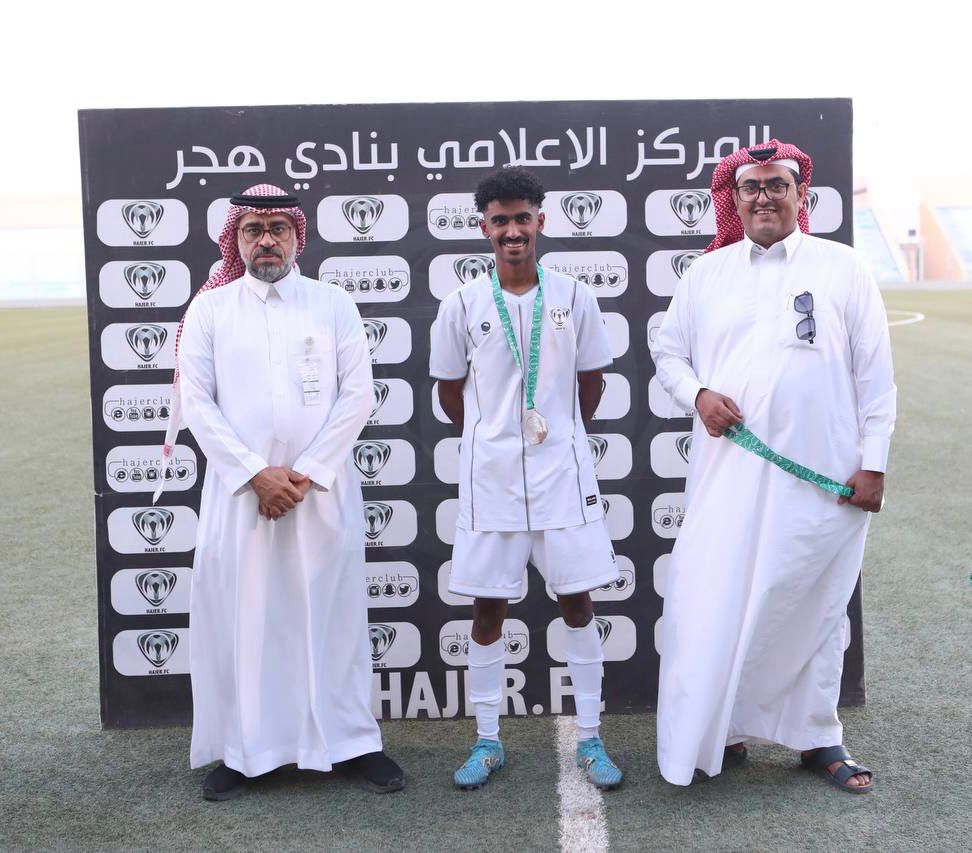 وبعد نهاية المباراة تم تتويج لاعبي هجر بالميداليات الفضية وذلك نظير تحقيقهم المركز الثاني برصيد ٥٥ نقطة .
