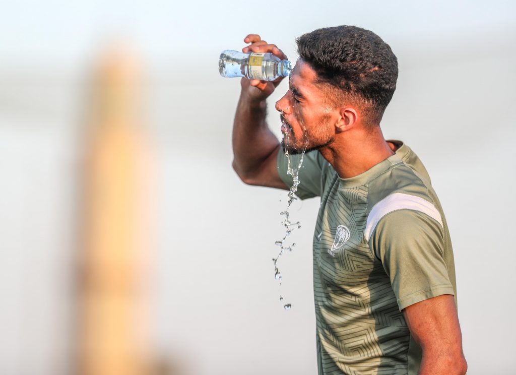 وبعد نهاية التدريبات خضع اللاعبين لجلسات استشفاء في حمام الثلج لتخفيف الإرهاق .