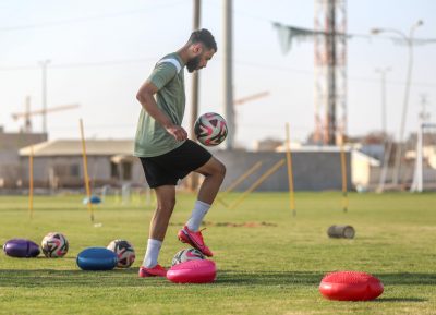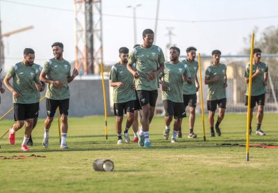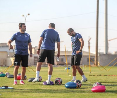 وبدأت التدريبات بتمارين الإحماء واللياقة بعد ذلك طبق اللاعبين عدد من الجمل الفنية للجوانب الدفاعية والهجومية ،  كما خضع حراس المرمى لتدريبات خاصة مع مدرب الحراس .